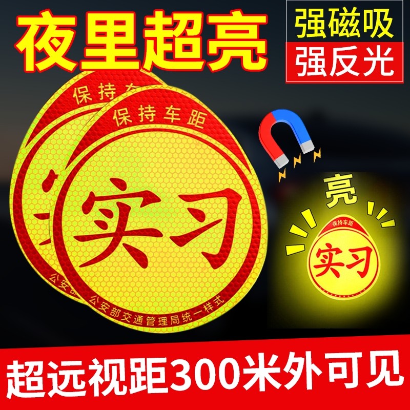 实习车贴新手上路反光磁贴汽车贴纸创意实习期专用磁吸标志女司机