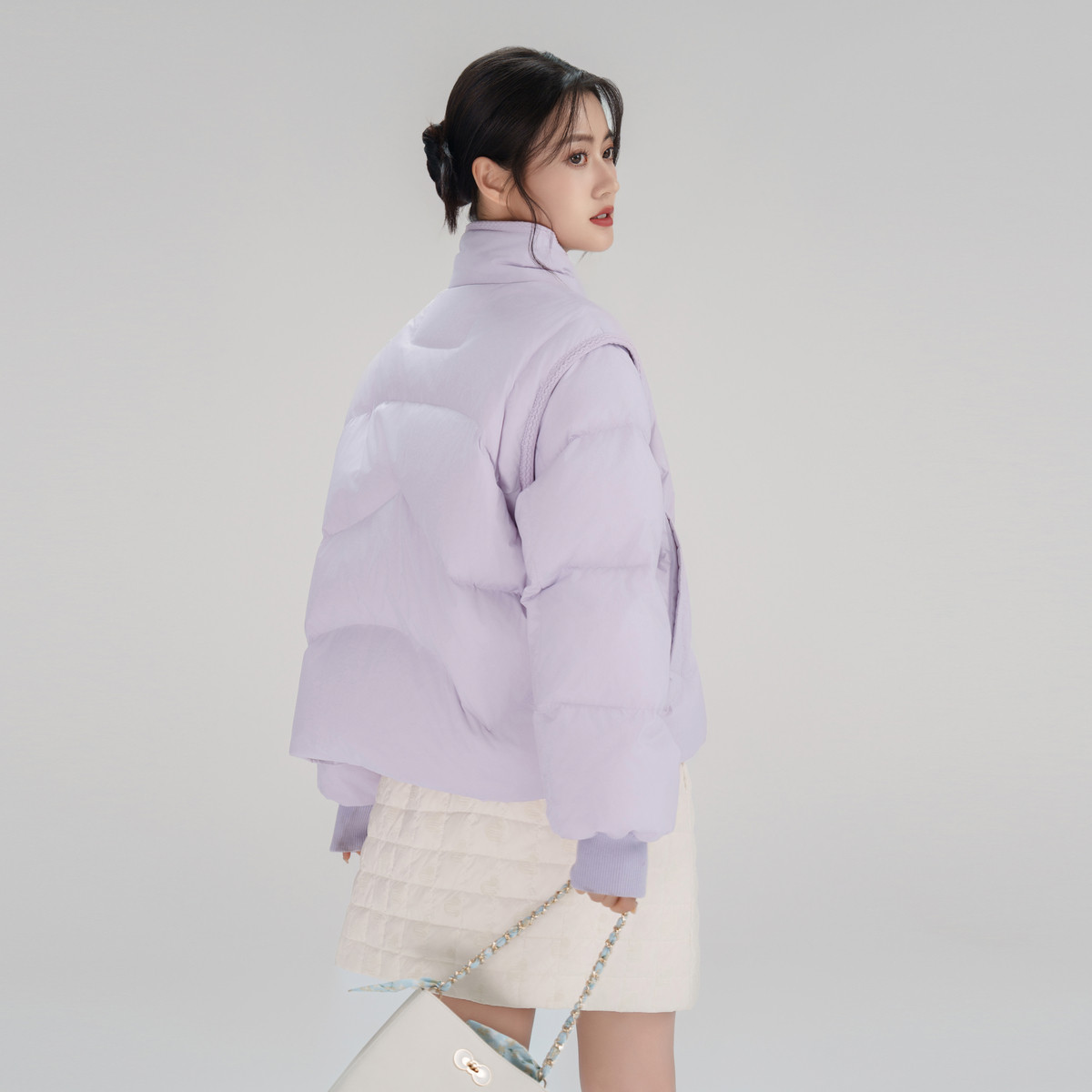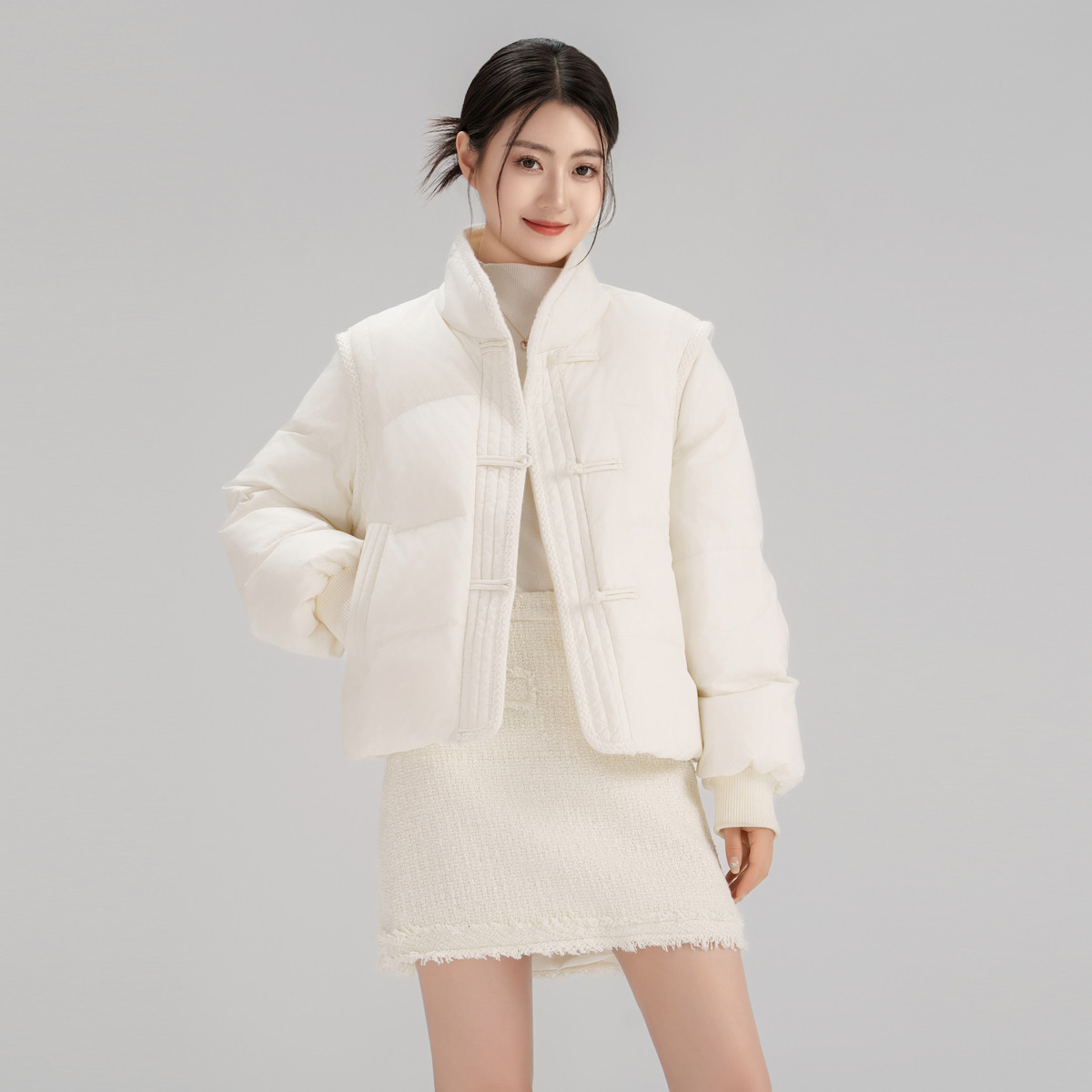 雪中飞2025冬新款女士小短款羽绒服立领新中式面包服可拆卸袖