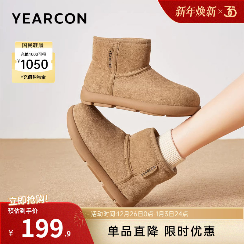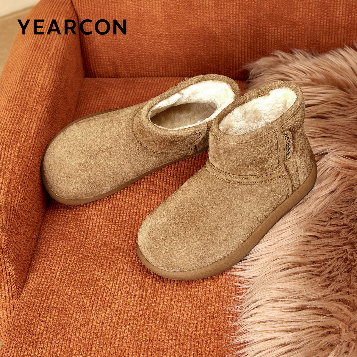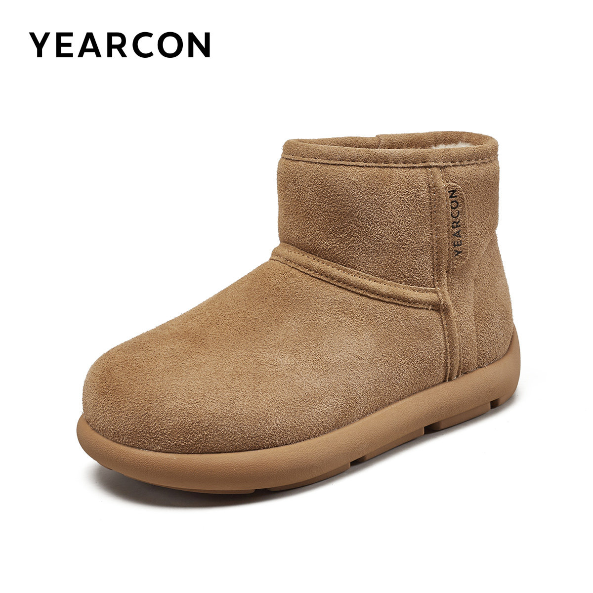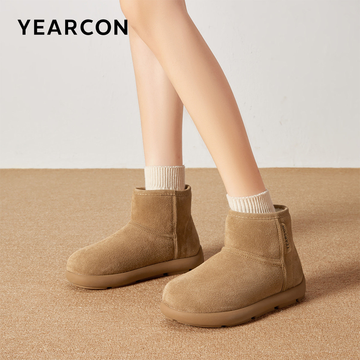 意尔康女鞋冬季加绒保暖棉鞋平底短筒雪地靴户外休闲短靴女士勃肯