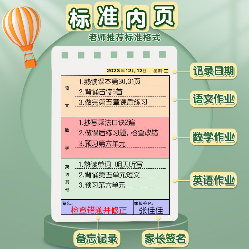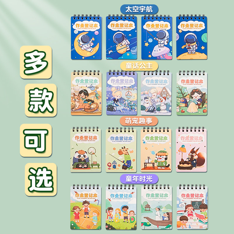 家庭作业登记本可爱卡通作业笔记本小学生专用作业备忘录加厚优质纸张记事本双面书写不易透墨课堂作业摘抄本