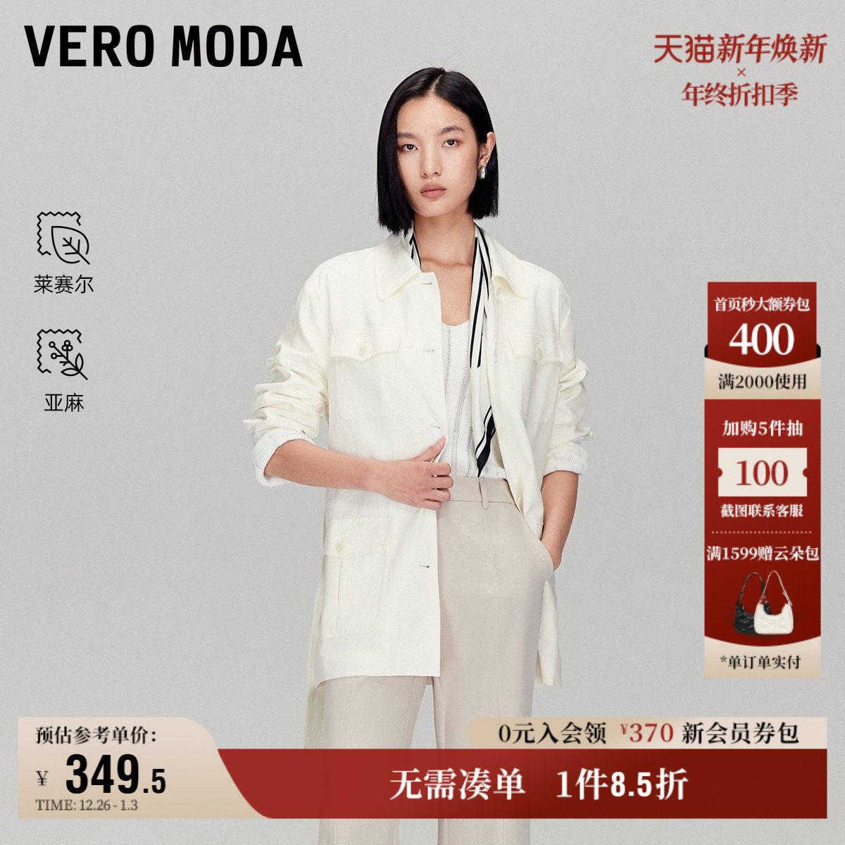 Vero Moda奥莱夹克2025秋冬新款含莱赛尔棉亚麻纯色外套简约休闲