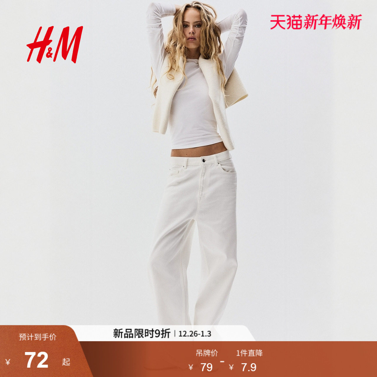 HM女装T恤2025冬季新款时尚休闲合身棉质打底长袖圆领上衣1264835
