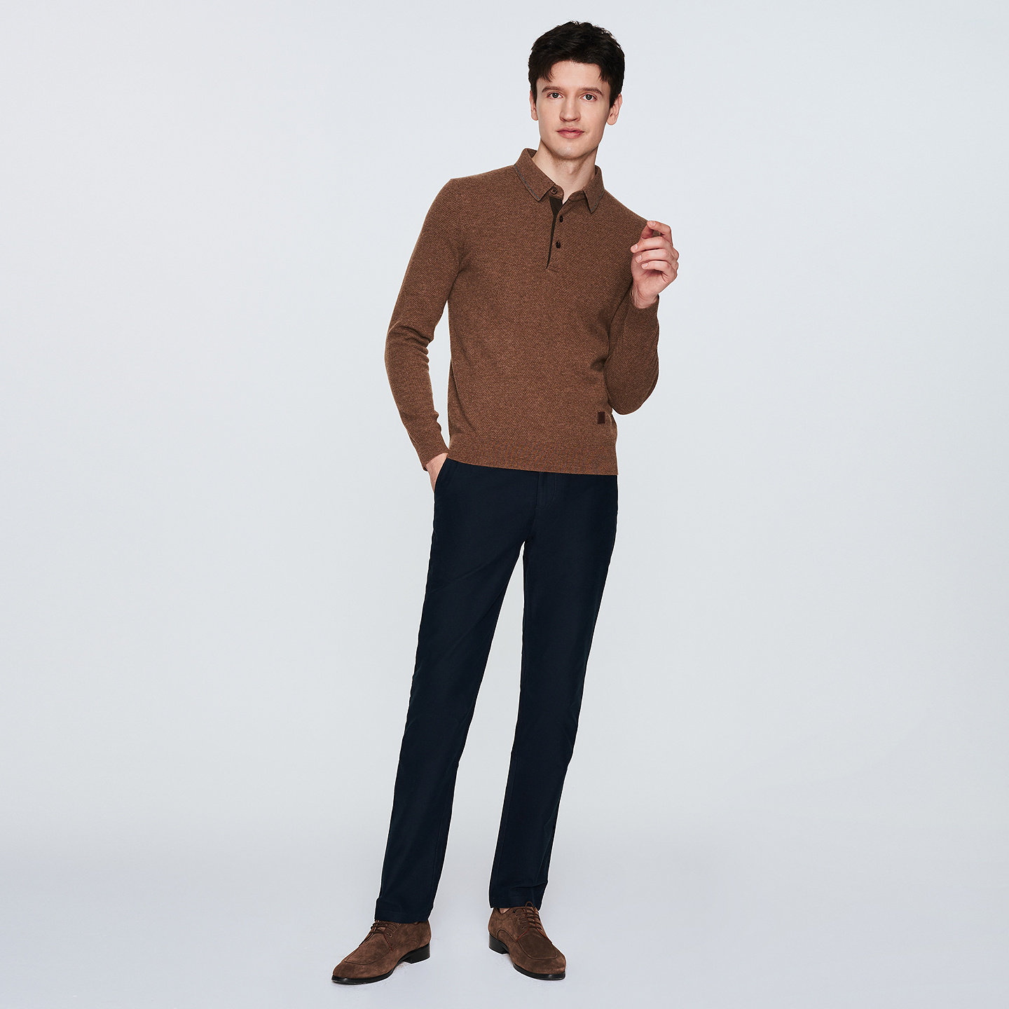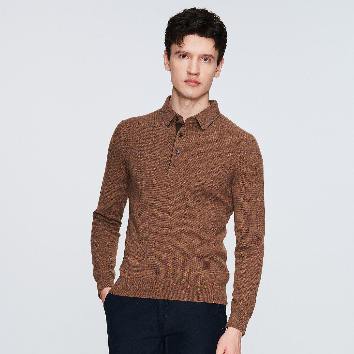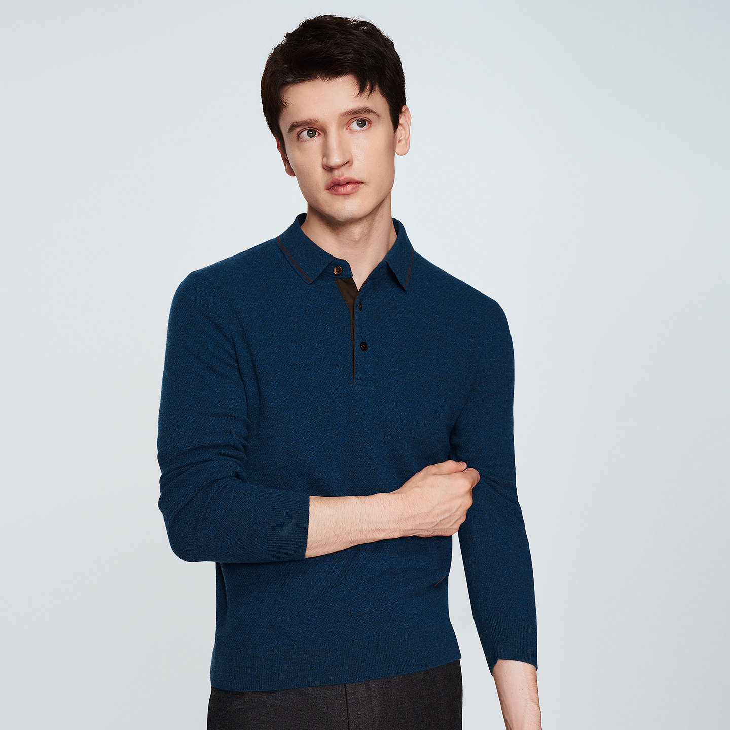 JODOLL乔顿男双色羊毛山羊绒毛衣冬季休闲舒适翻领保暖高弹羊毛衫