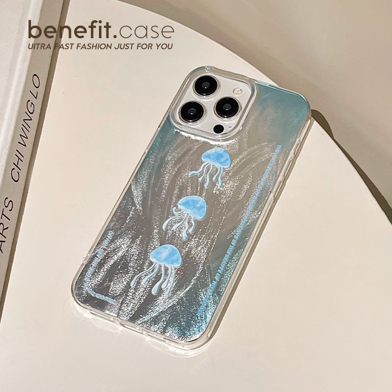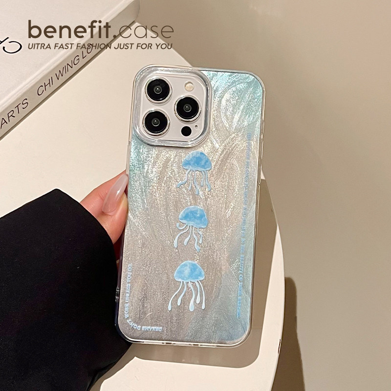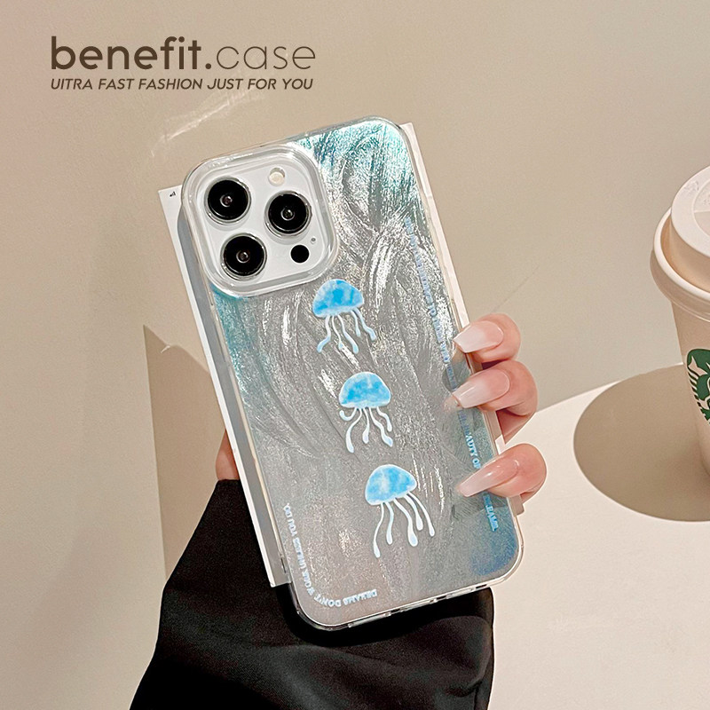 benefit冷淡风蓝水母羽纱17适用于iphone16promax苹果15PRO手机壳13新款14套12创意11硬壳xsmax硅胶xr防摔8p