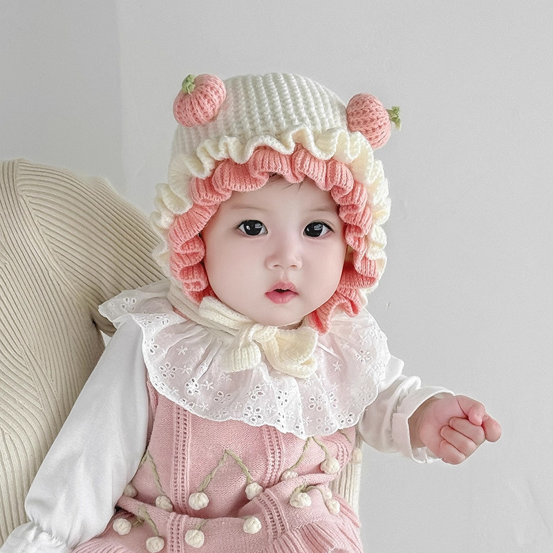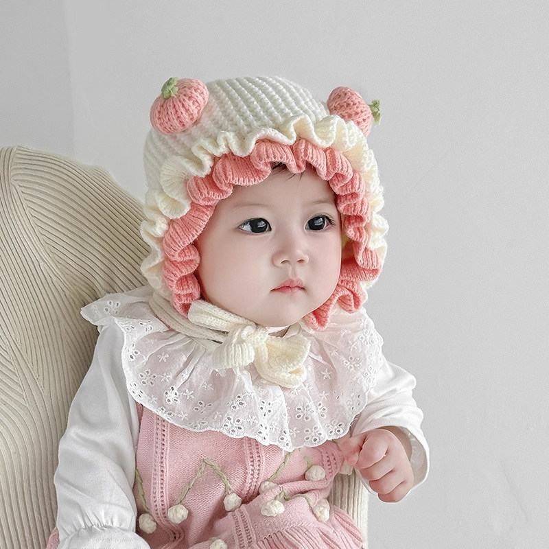 宝宝帽子春秋男孩2025新款女宝纯棉儿童冬季防风堆堆帽围脖两件套