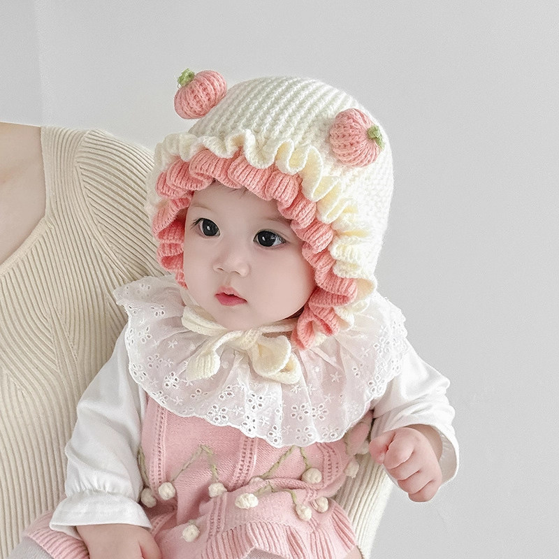 婴儿帽子秋冬季小月龄女宝宝护耳帽公主新生婴幼儿针织毛线帽粉色