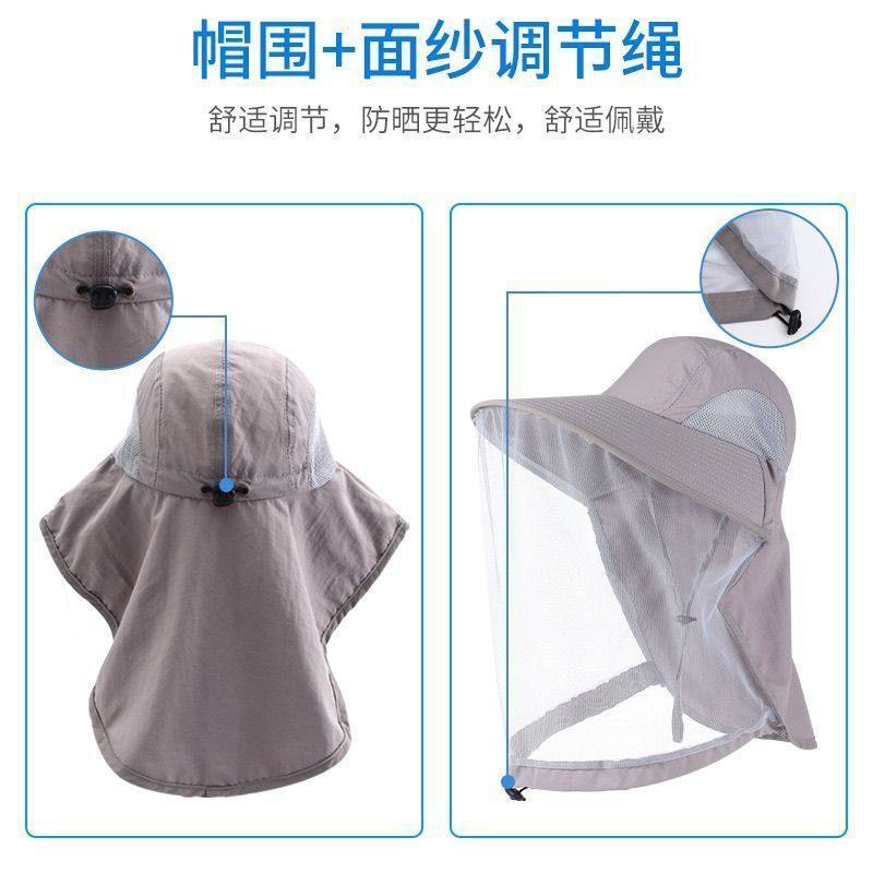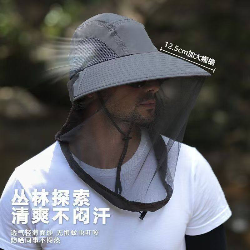 钓鱼帽防晒遮阳帽遮脸男女网纱面罩夏季户外登山帽大帽檐防蚊护颈