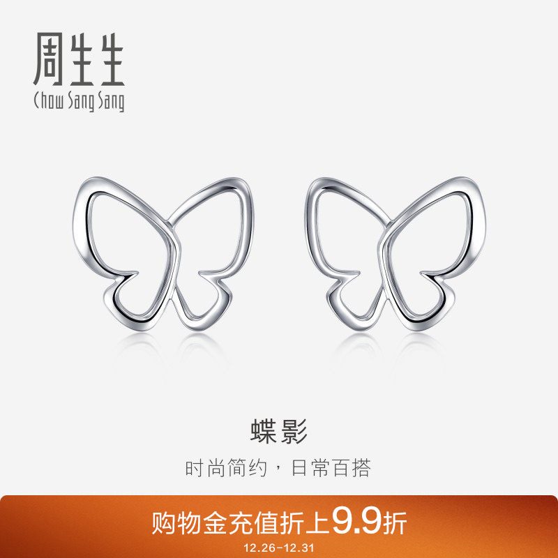周生生Pt950铂金镂空蝴蝶耳钉耳饰送女友91917E