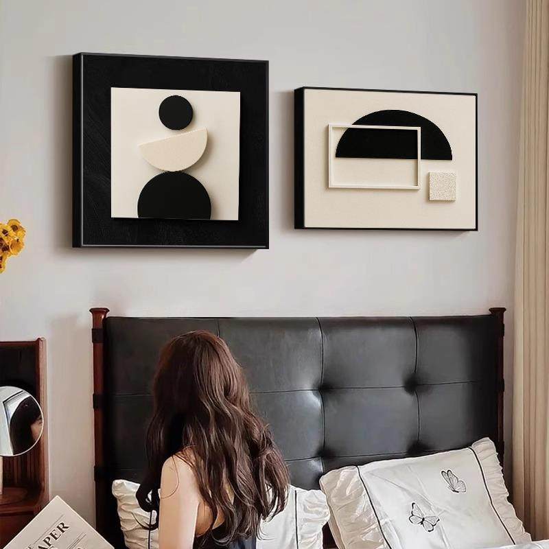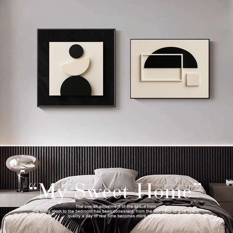 简约现代卧室床头装饰画黑白高级感主卧房间挂画餐厅抽象壁画客厅