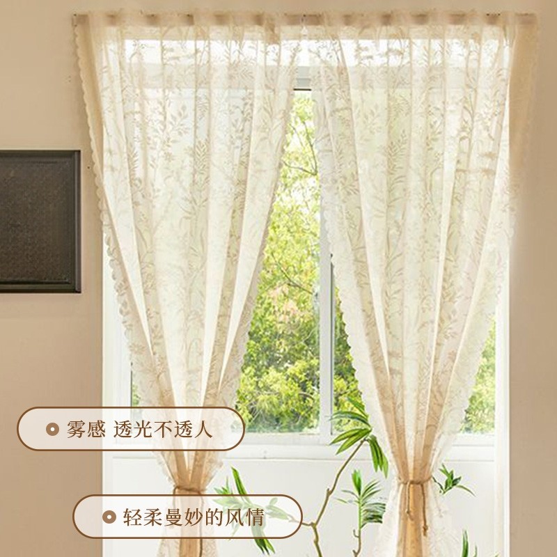 透光不透人魔术贴窗帘免打孔安装防晒纱帘2025飘窗阳台全遮光法式