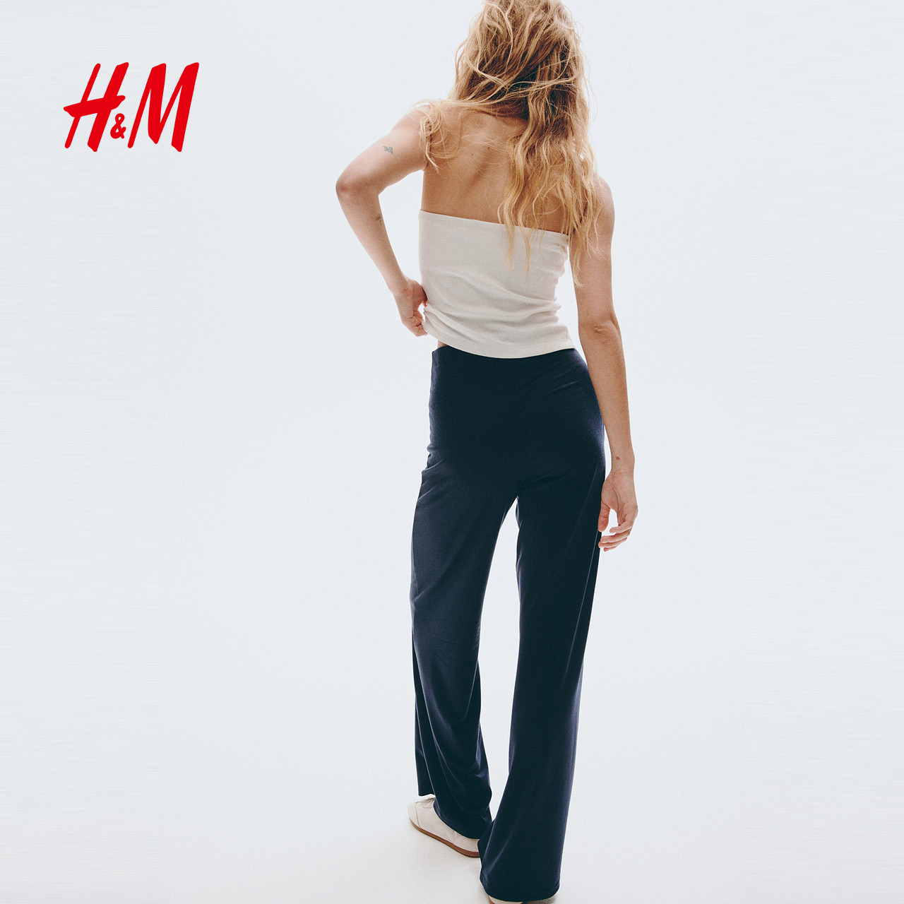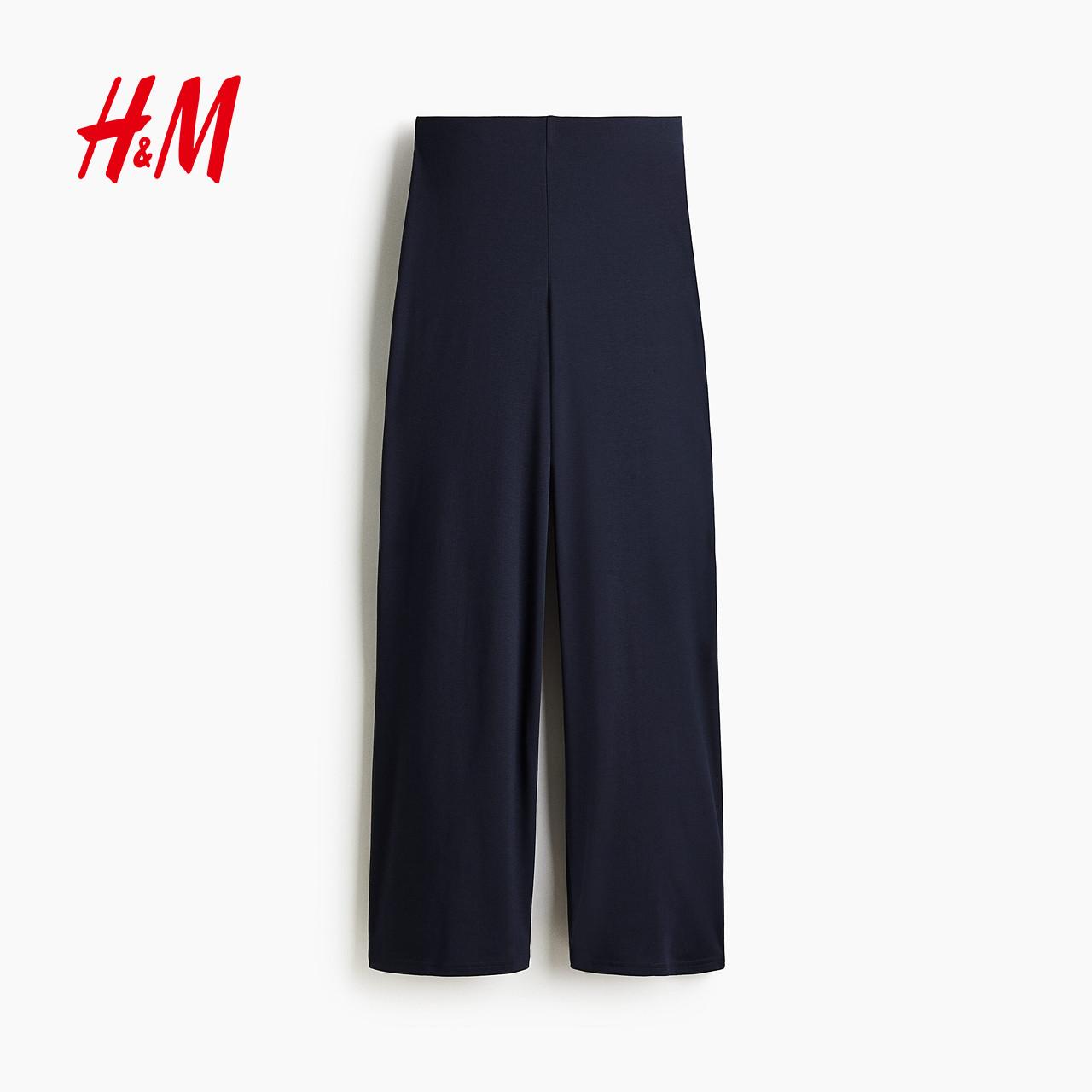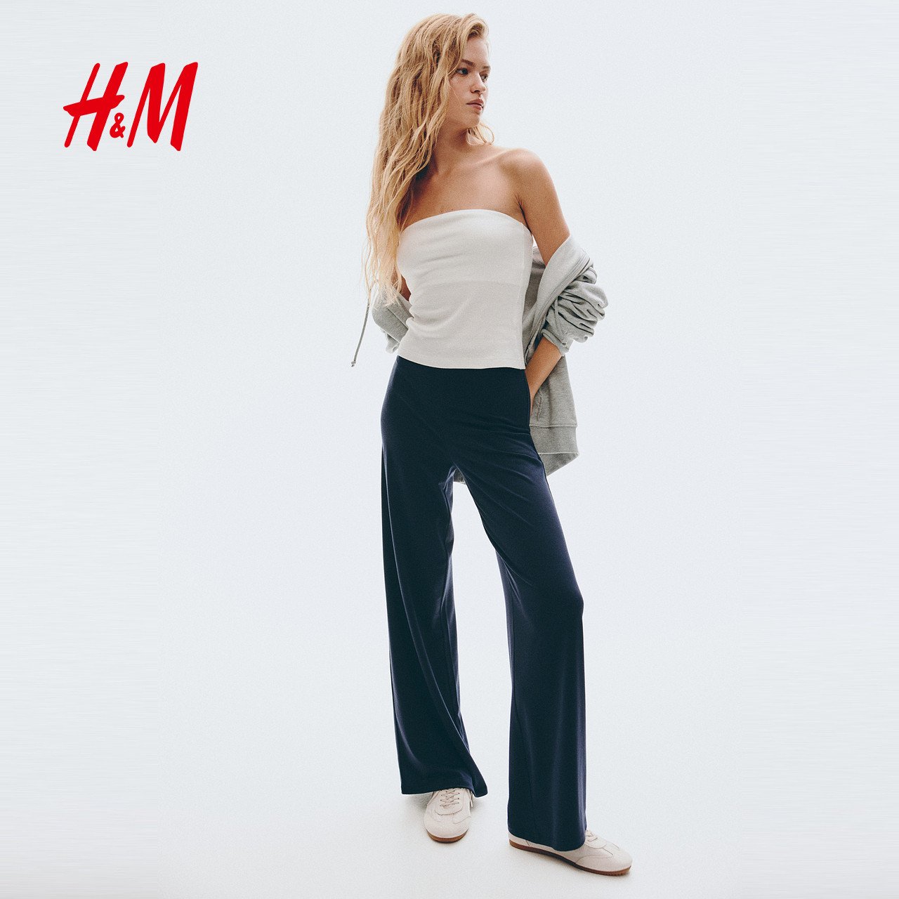 HM女装休闲裤2025冬季新款时尚潮流舒适柔软汗布阔腿裤1261501