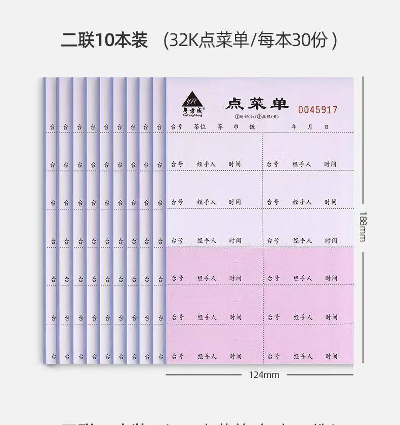 自动复写点菜单32K酒水单二联三联记菜单餐饮可撕菜单本饭店记账