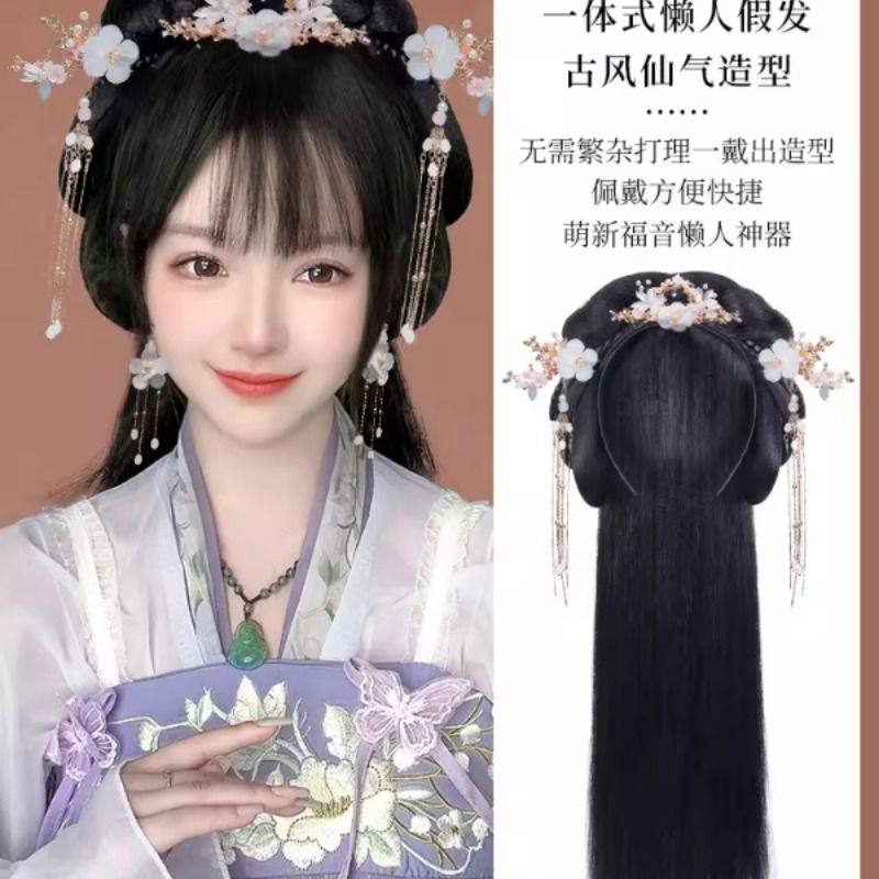 汉服假发一体懒人发箍流苏头饰古风盘发髻发饰造型古装日常垫发包