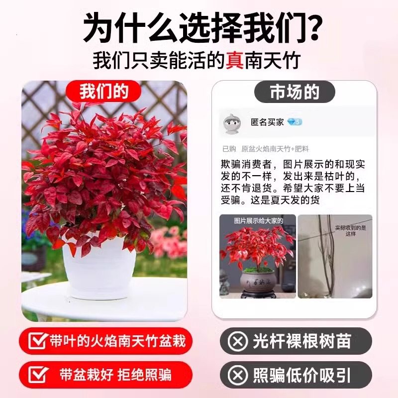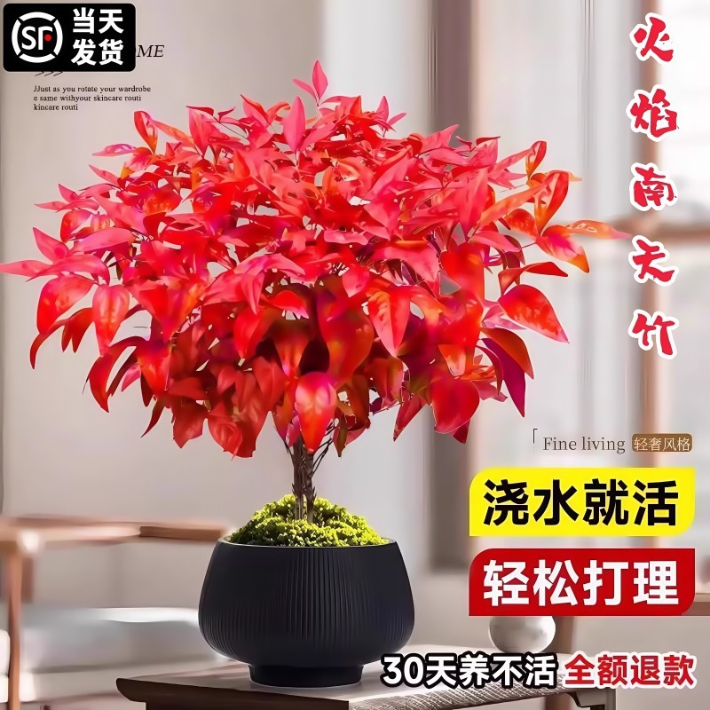 火焰南天竹盆栽树苗矮化小盆景室内禅意耐寒绿植物好养庭院摆放