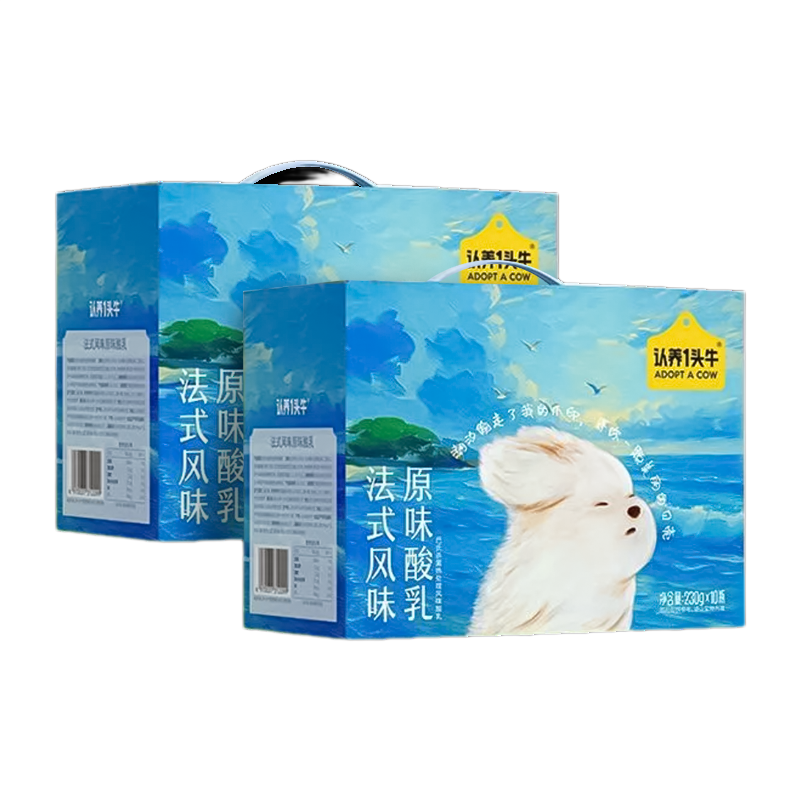 认养一头牛小狗230g*10瓶*2箱酸奶原味/白草莓味营养早餐黄桃藜麦