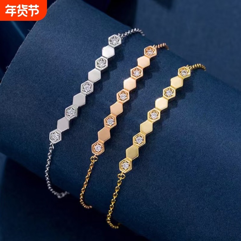 蜂巢项链罗曼高叶同款女菱格纹锁骨链纯银蜂窝微笑吊坠黄金笑脸