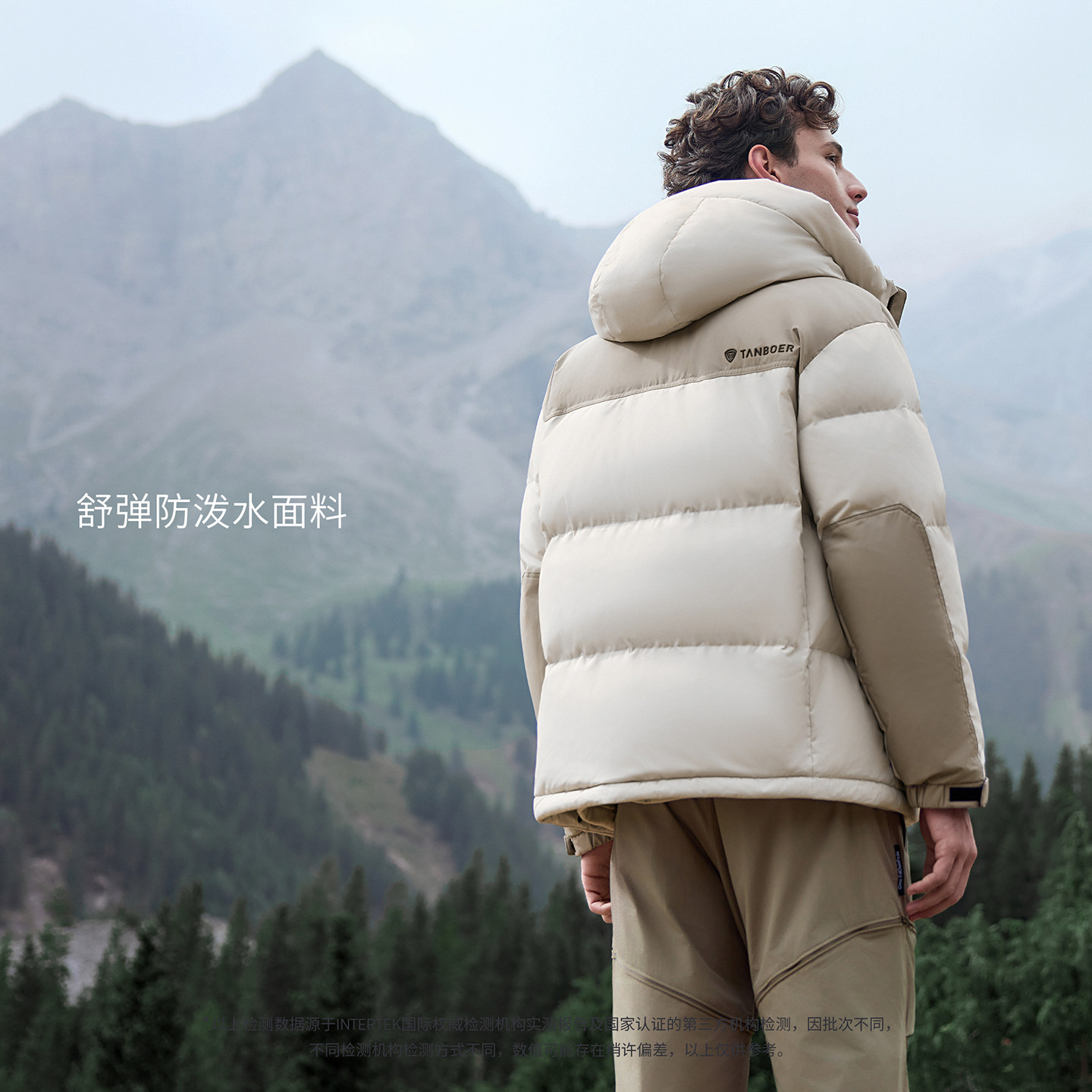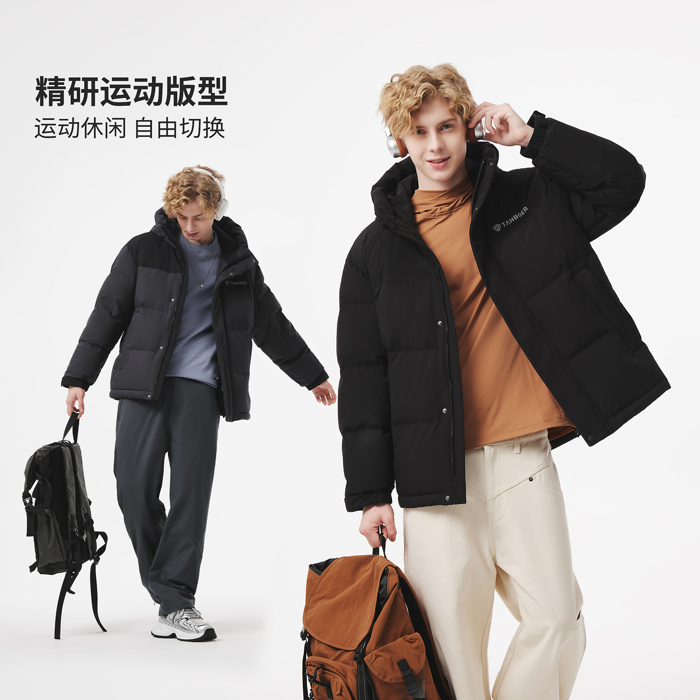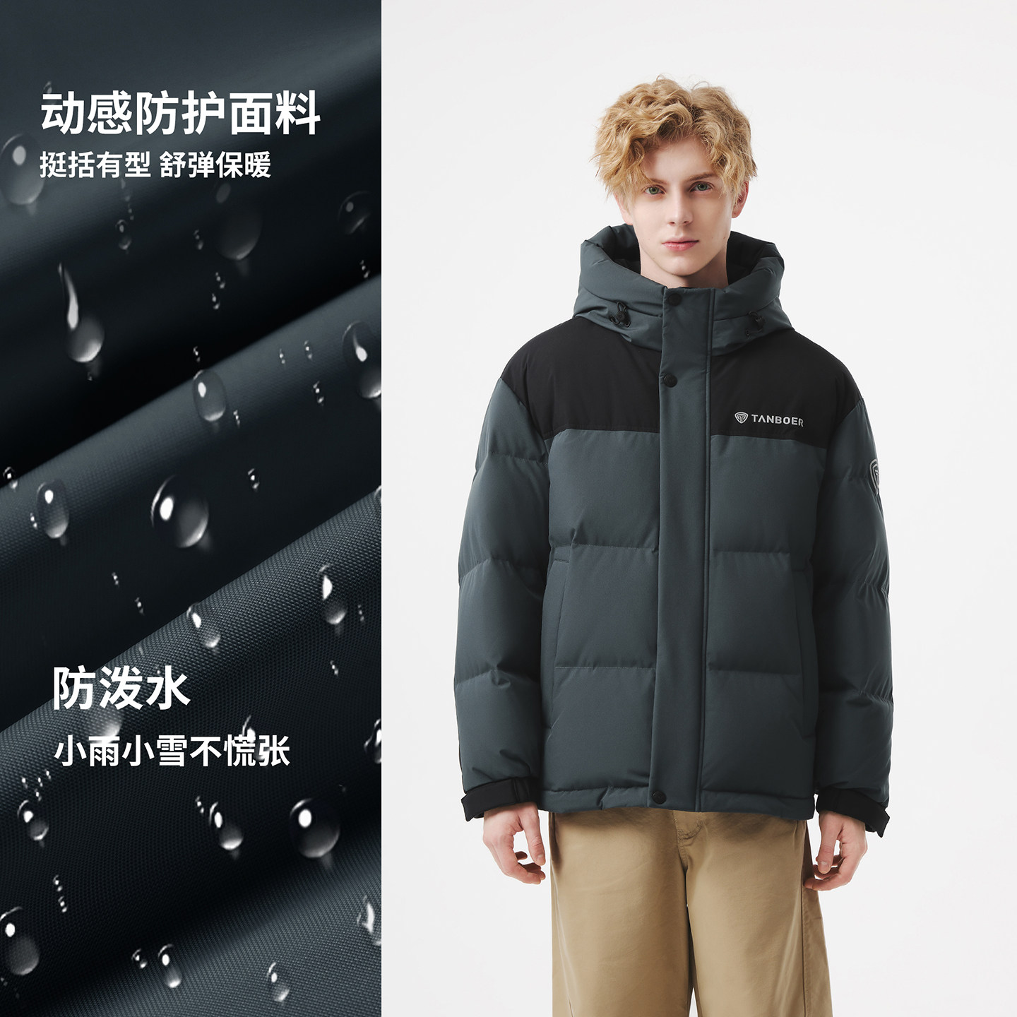 坦博尔2025新款冬季男士羽绒服短款休闲连帽冬装户外运动耐脏保暖
