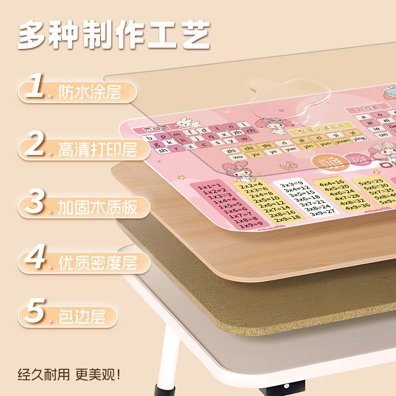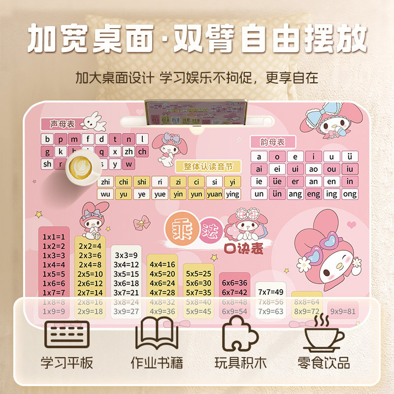 儿童学习桌床上小桌子可折叠小学生书桌写字作业桌卡通小桌板便携可移动餐桌家用卧室飘窗懒人桌乘法口诀表