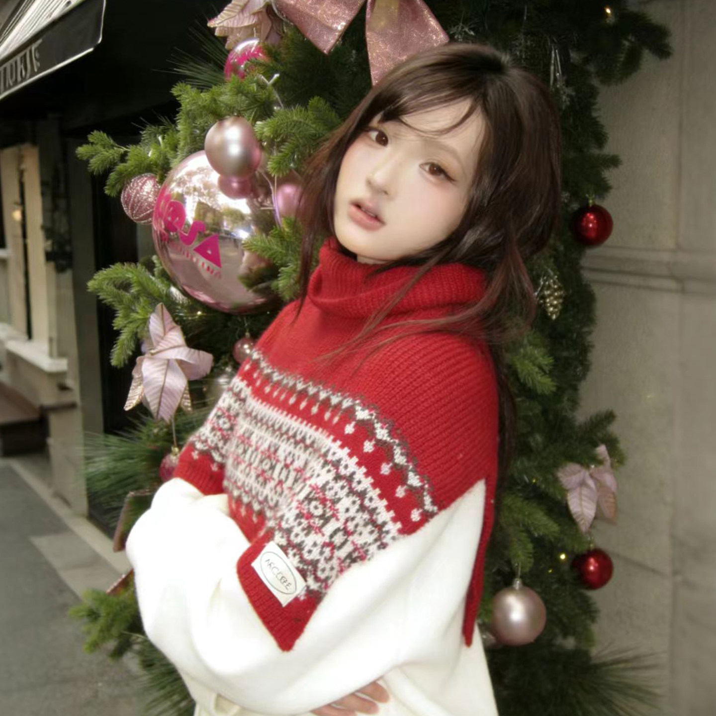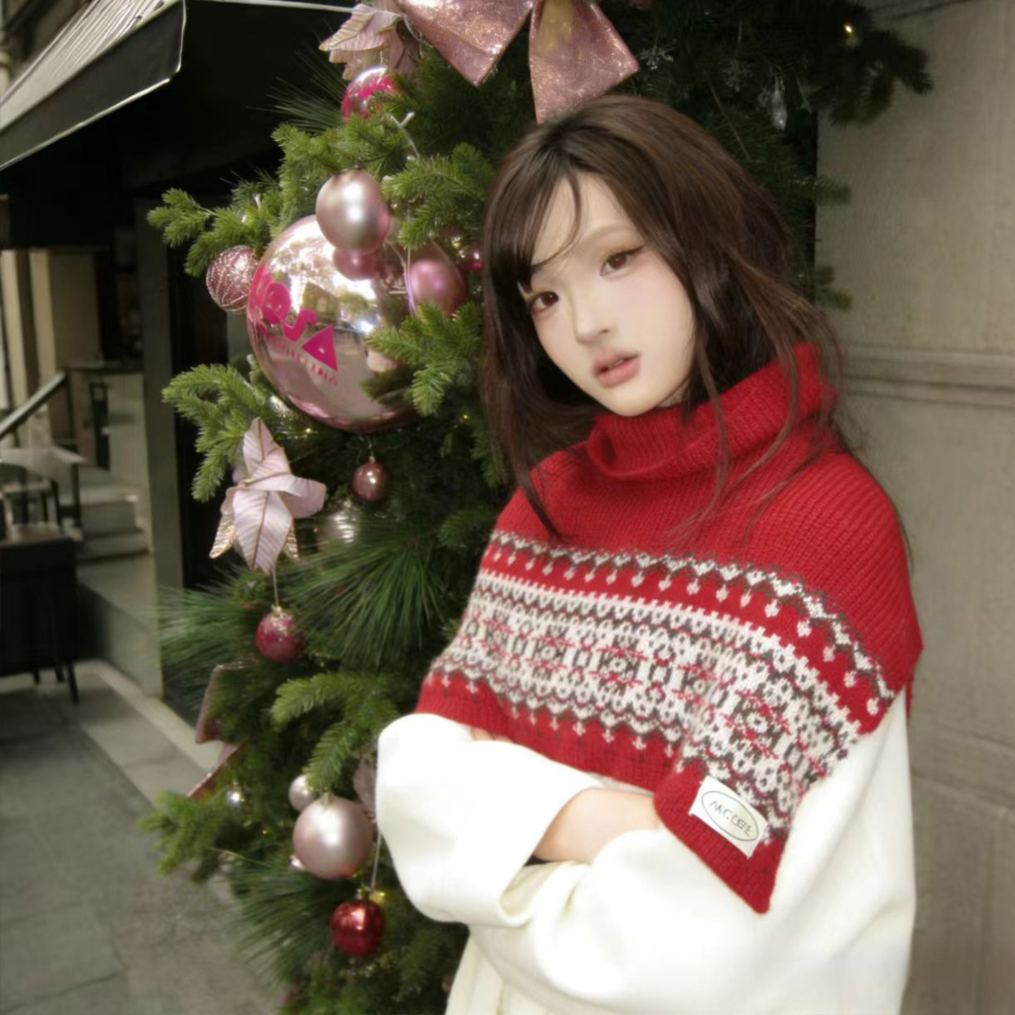 雪花双面针织围巾女秋冬季韩系氛围感加厚保暖高级感围脖复古披肩