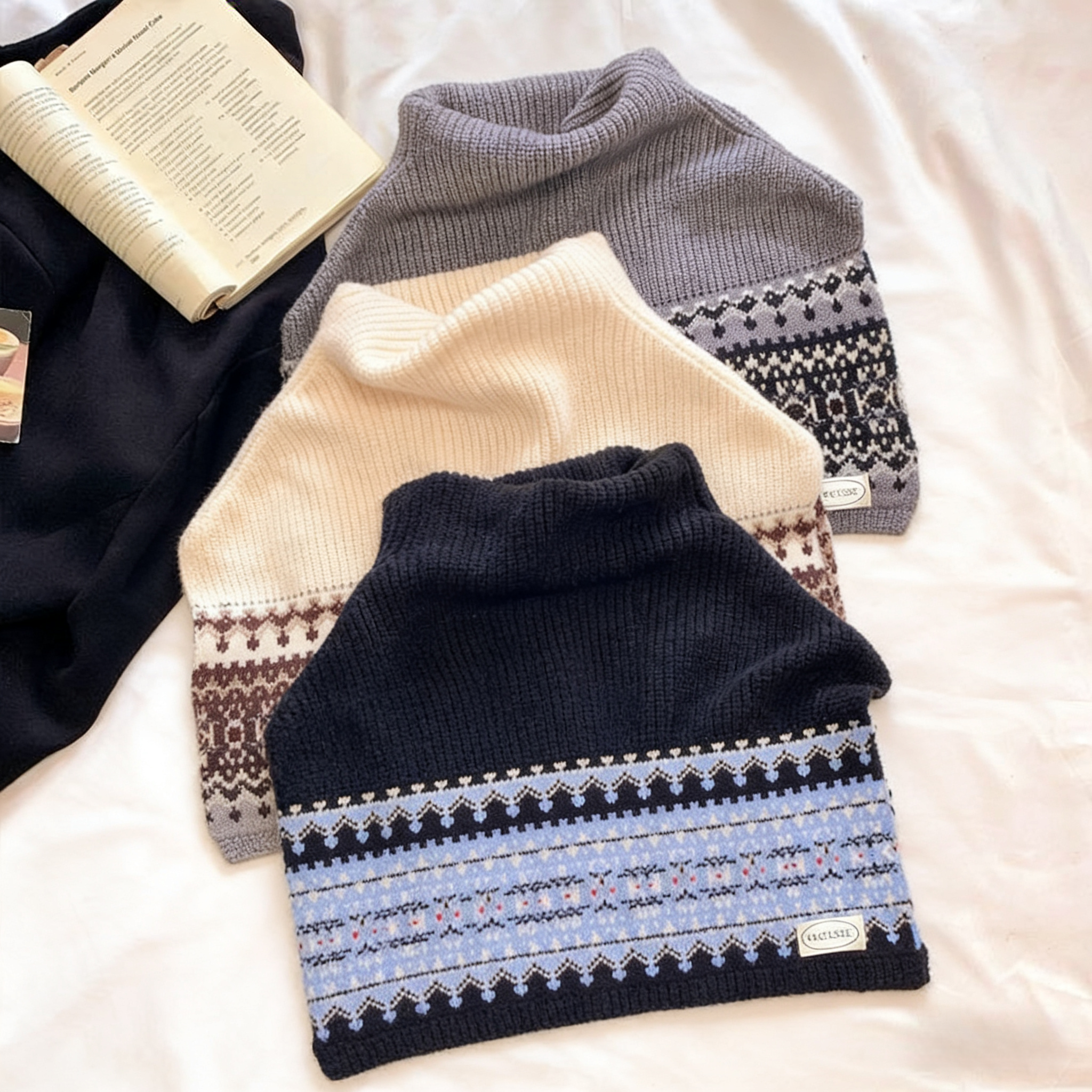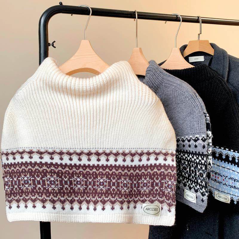 费尔岛高领套头披肩围巾女士秋冬外搭两用高级感防寒针织保暖围脖