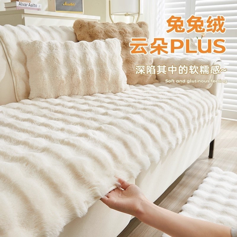 冬季加厚兔兔绒网红沙发垫毛绒坐垫防滑皮沙发套罩秋冬新款盖布巾