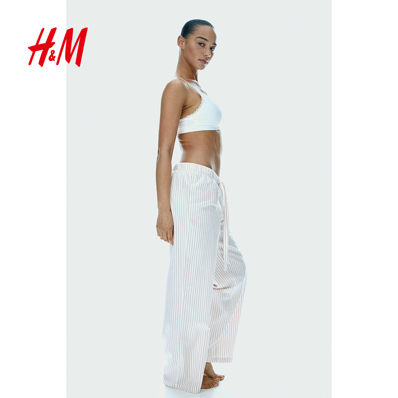 百分百纯棉女休闲家居睡裤宽松大码高腰春夏秋薄款长裤直筒空调裤
