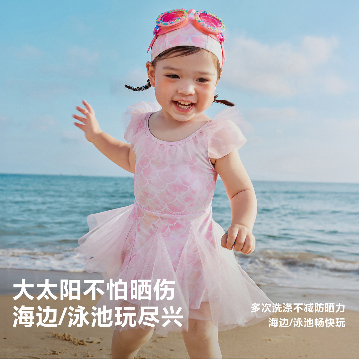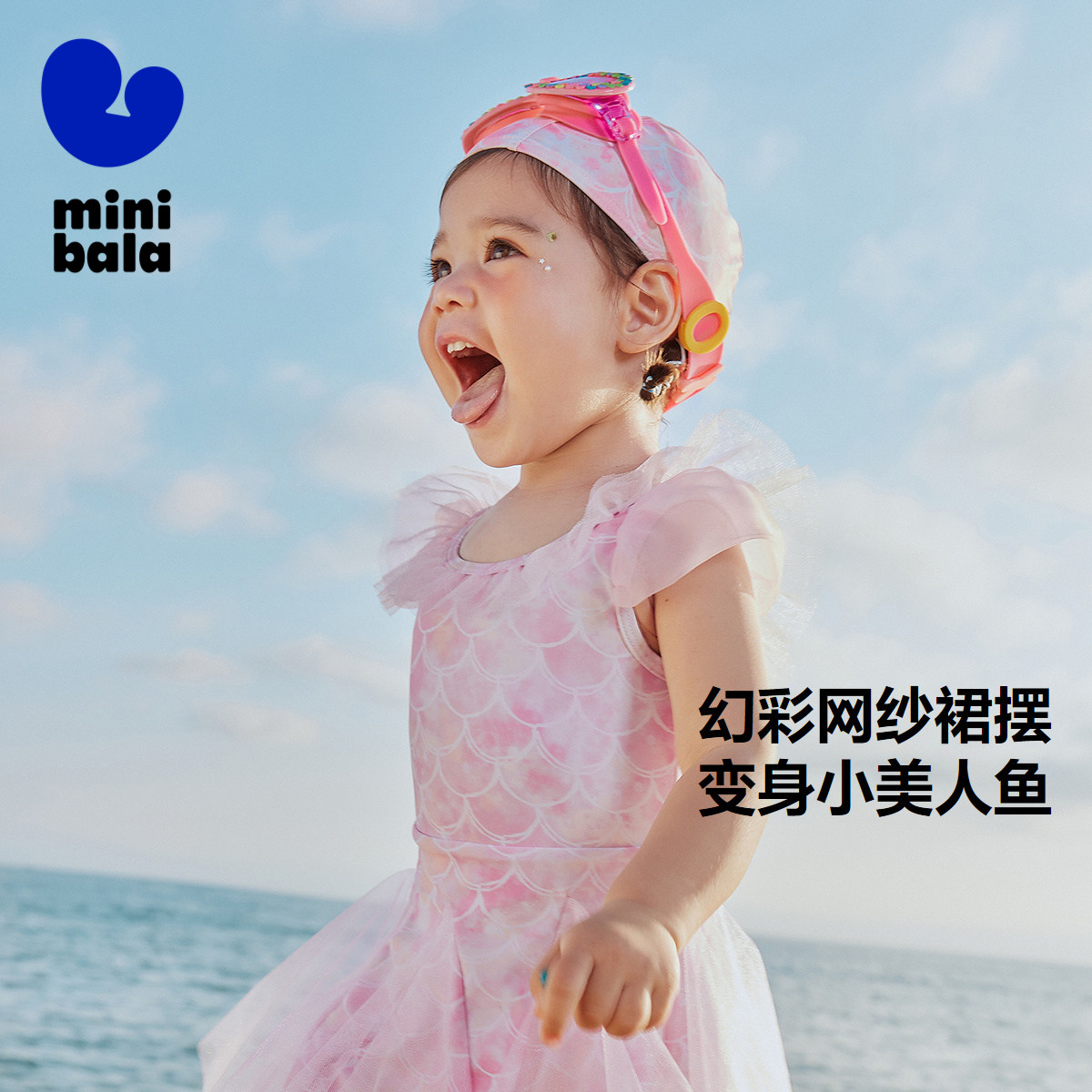 【UPF50+】迷你巴拉巴拉女童游泳衣无袖美人鱼连体泳装网纱裙摆
