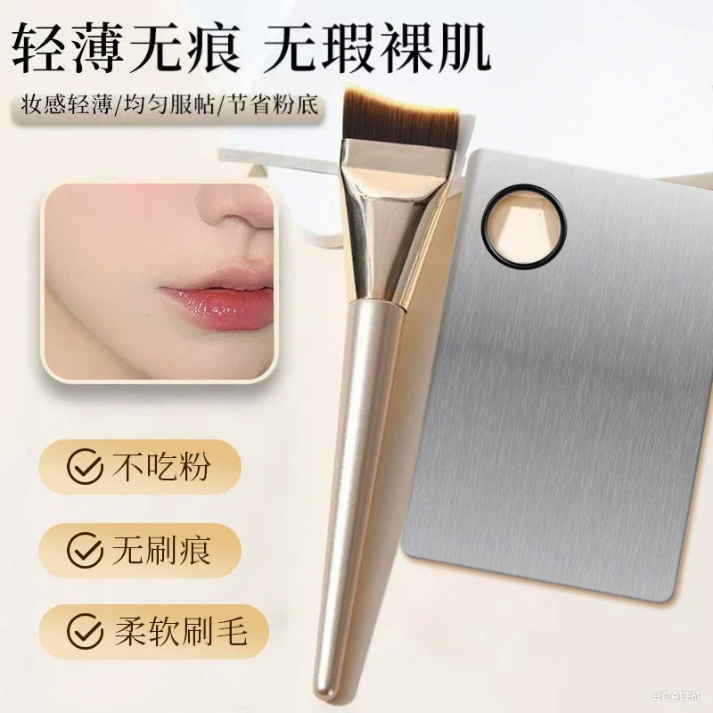 尔木萄鱼尾薄弧一字型粉底刷扁平头不吃粉刀锋无痕粉底液化妆刷子