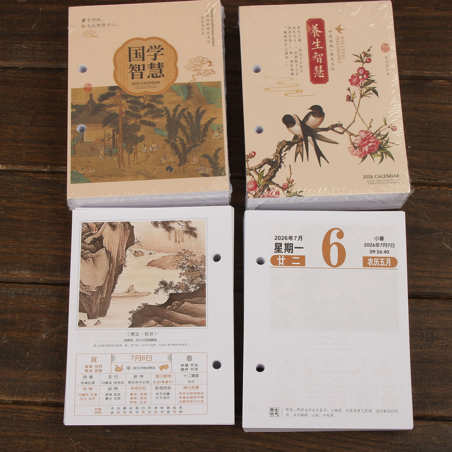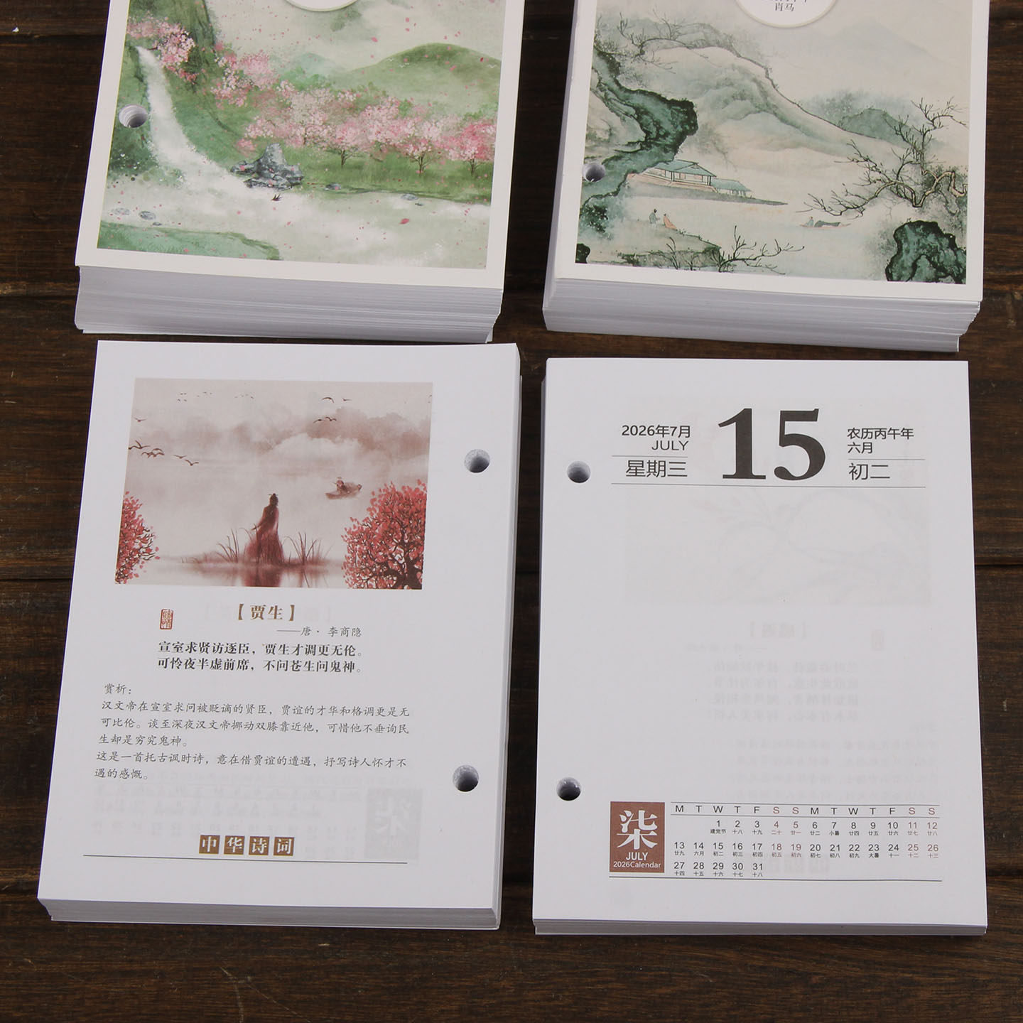 2026年国学诗词台历芯中号养生4.5cm7cm6cm8.3cm日历芯一天一页
