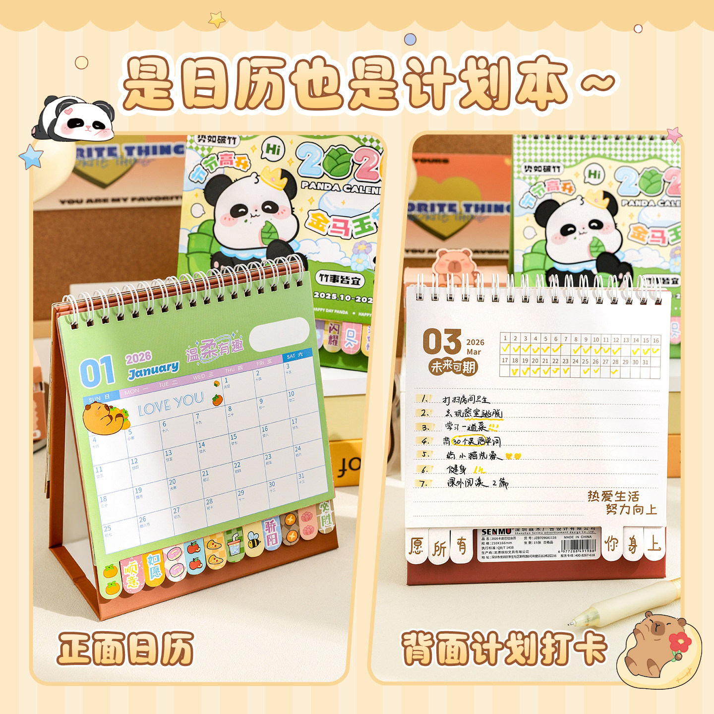 2026年新款台历创意卡通日历全年马年迷你小台历桌面摆件办公室学生每日计划表工作自律打卡记事mini计划月历