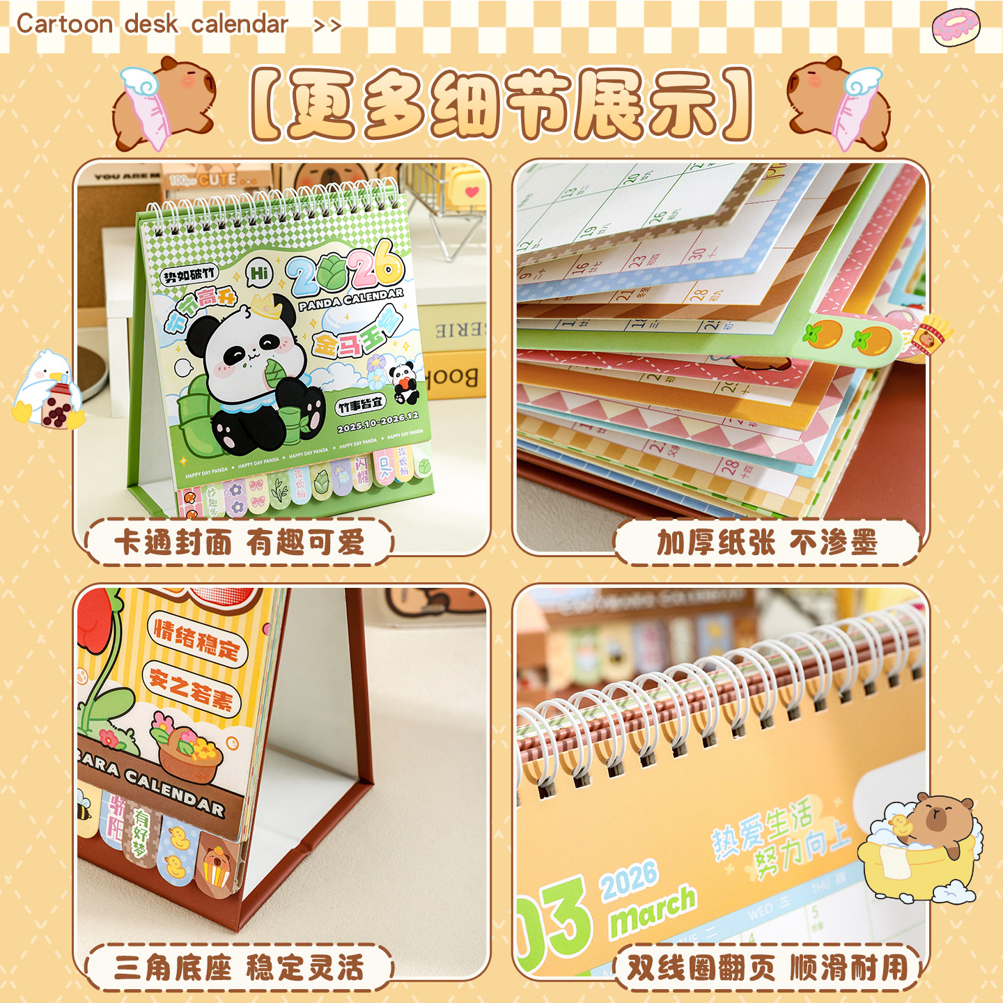 2026年台历新款日历创意桌面摆件学生用台历本记事本每日打卡计划本卡通可爱日历年历高考考研倒计时备忘录