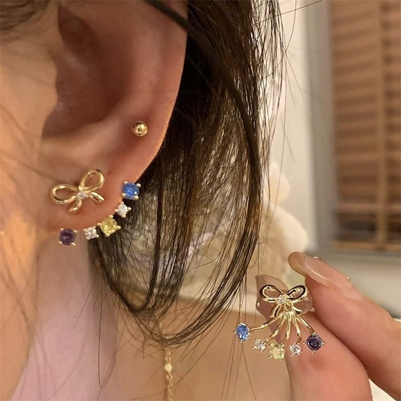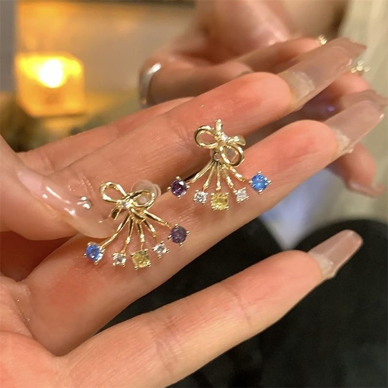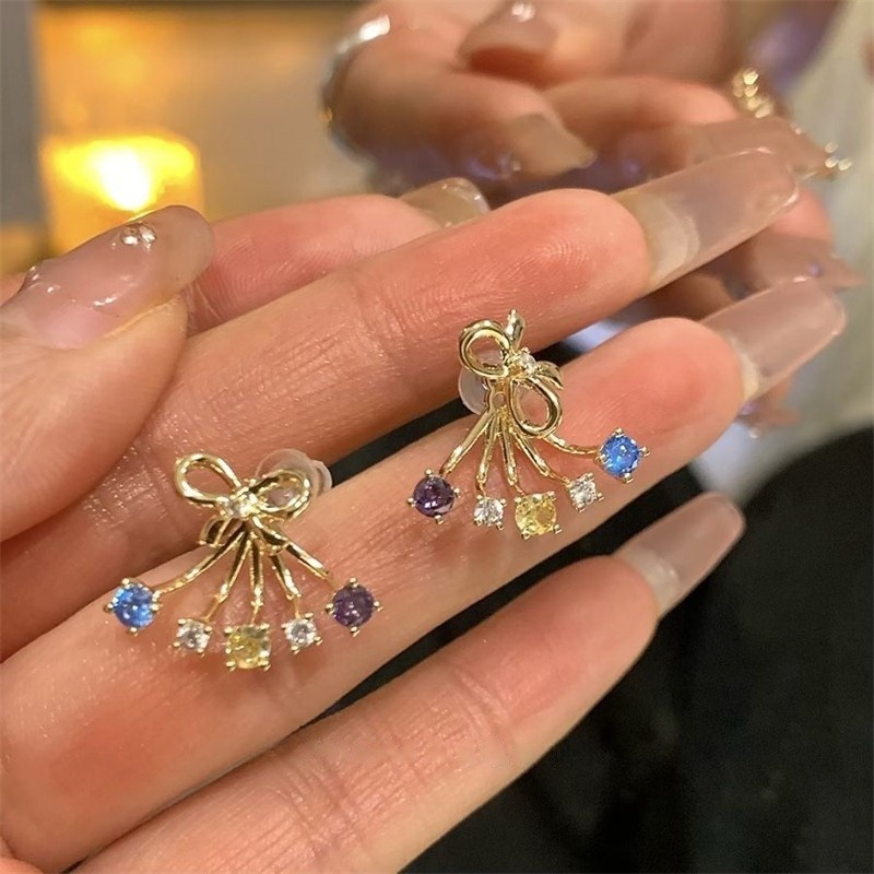 彩色蝴蝶结耳钉女925银耳环2025新款爆款高级感韩系耳饰锆石耳坠