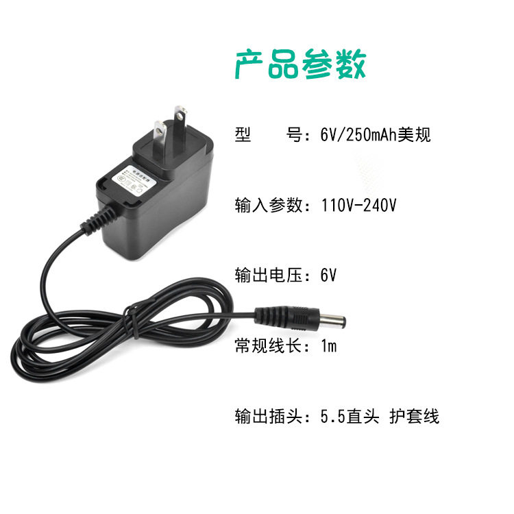 扫地机遥控车用美规6v250MAH电子充电器可订制