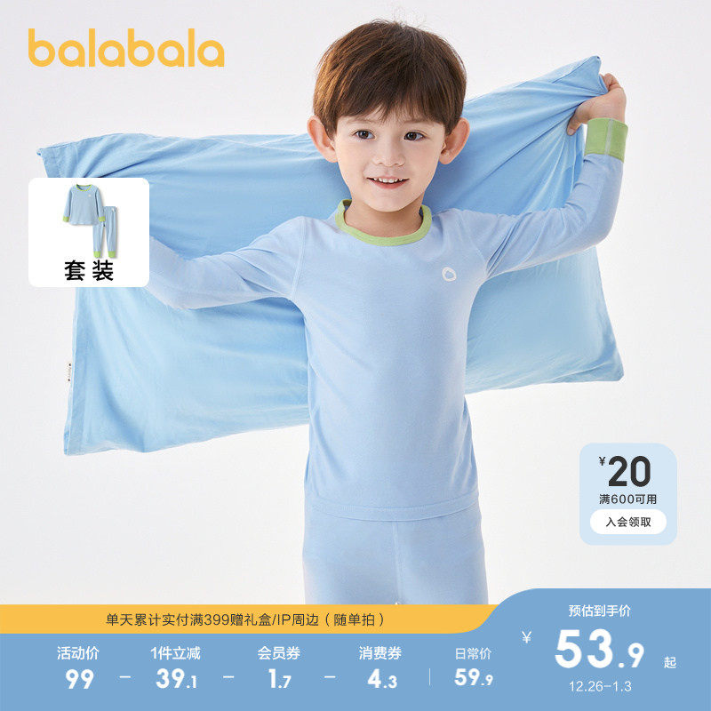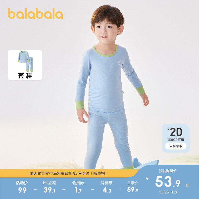 巴拉巴拉儿童秋衣秋裤男童女童内衣套装打底睡衣睡裤打底柔软舒适