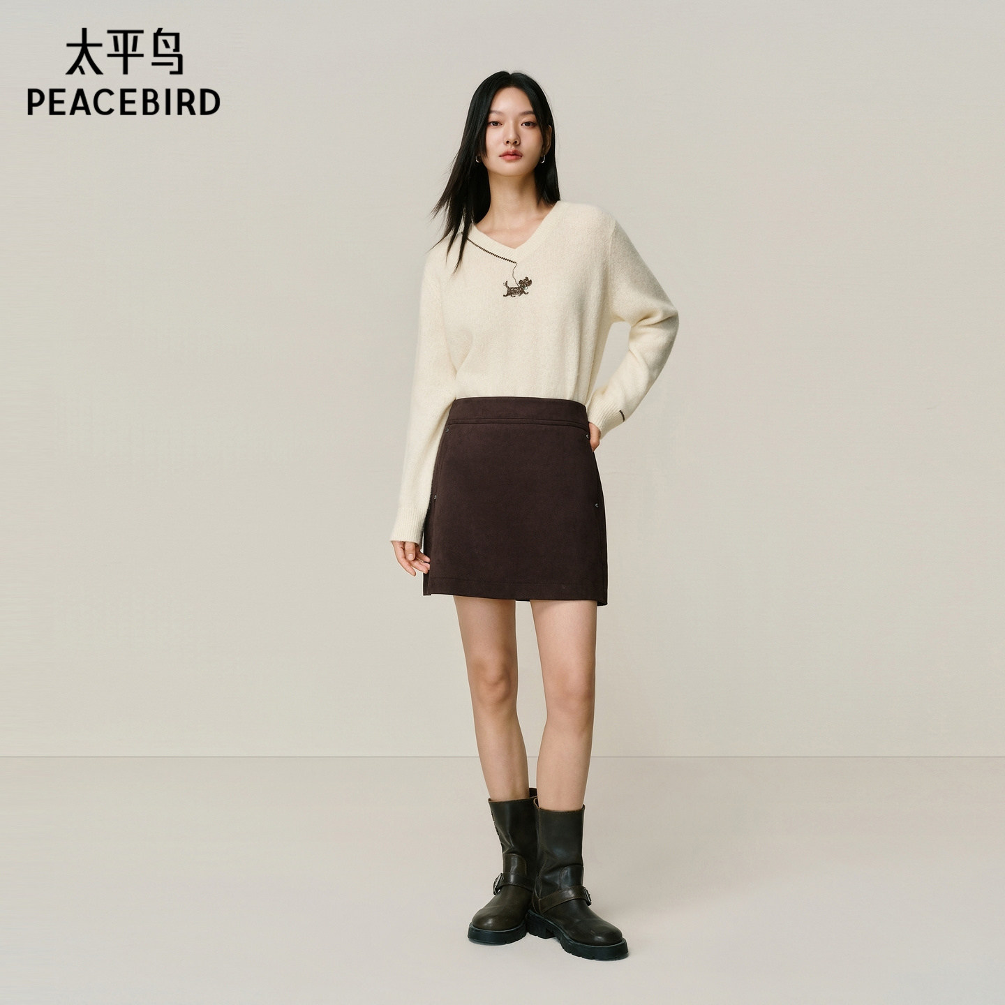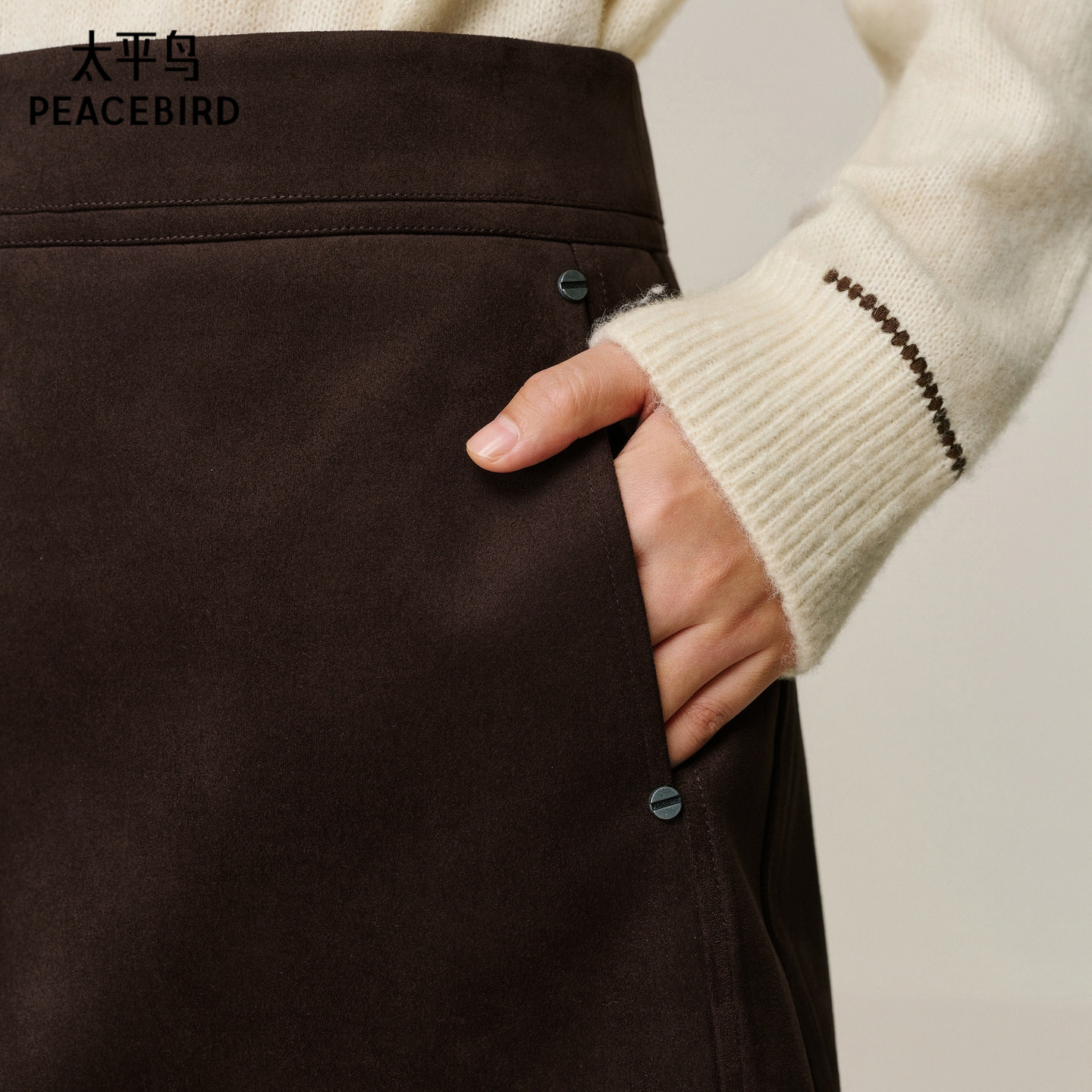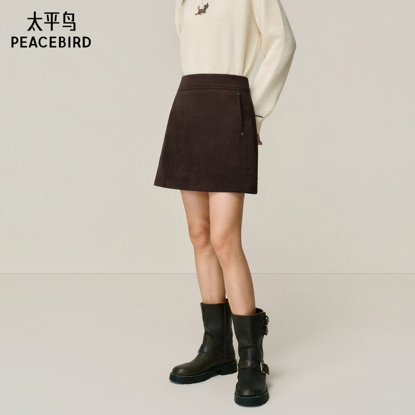 【商场同款】太平鸟仿麂皮绒棕色半身裙短裙女A字裙品质A3GEF4429