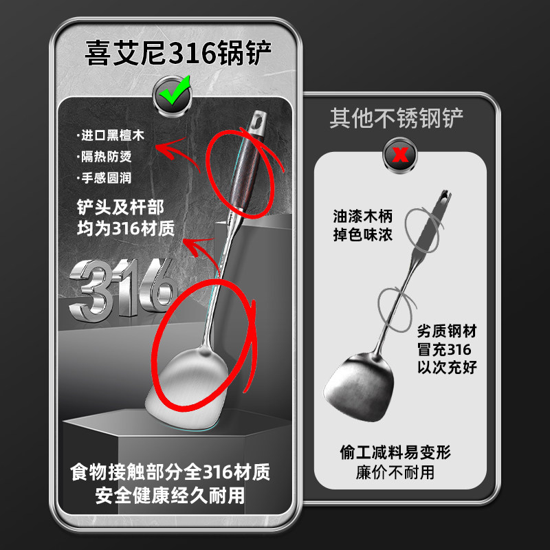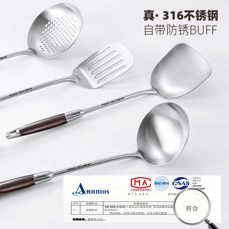 德国锅铲316不锈钢加厚炒菜铲子汤勺漏勺家用厨具炒勺套装铁锅铲