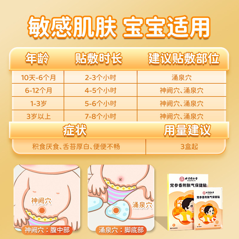 北京同仁堂胀气贴婴儿胀气新生儿排气宝宝足贴肚脐贴保健贴二月闹