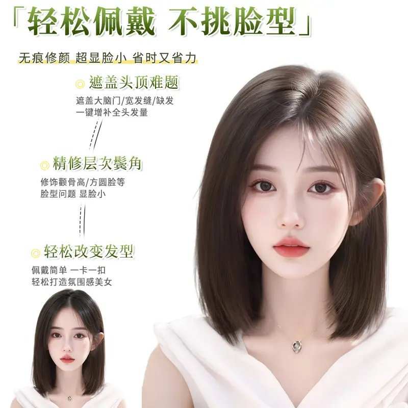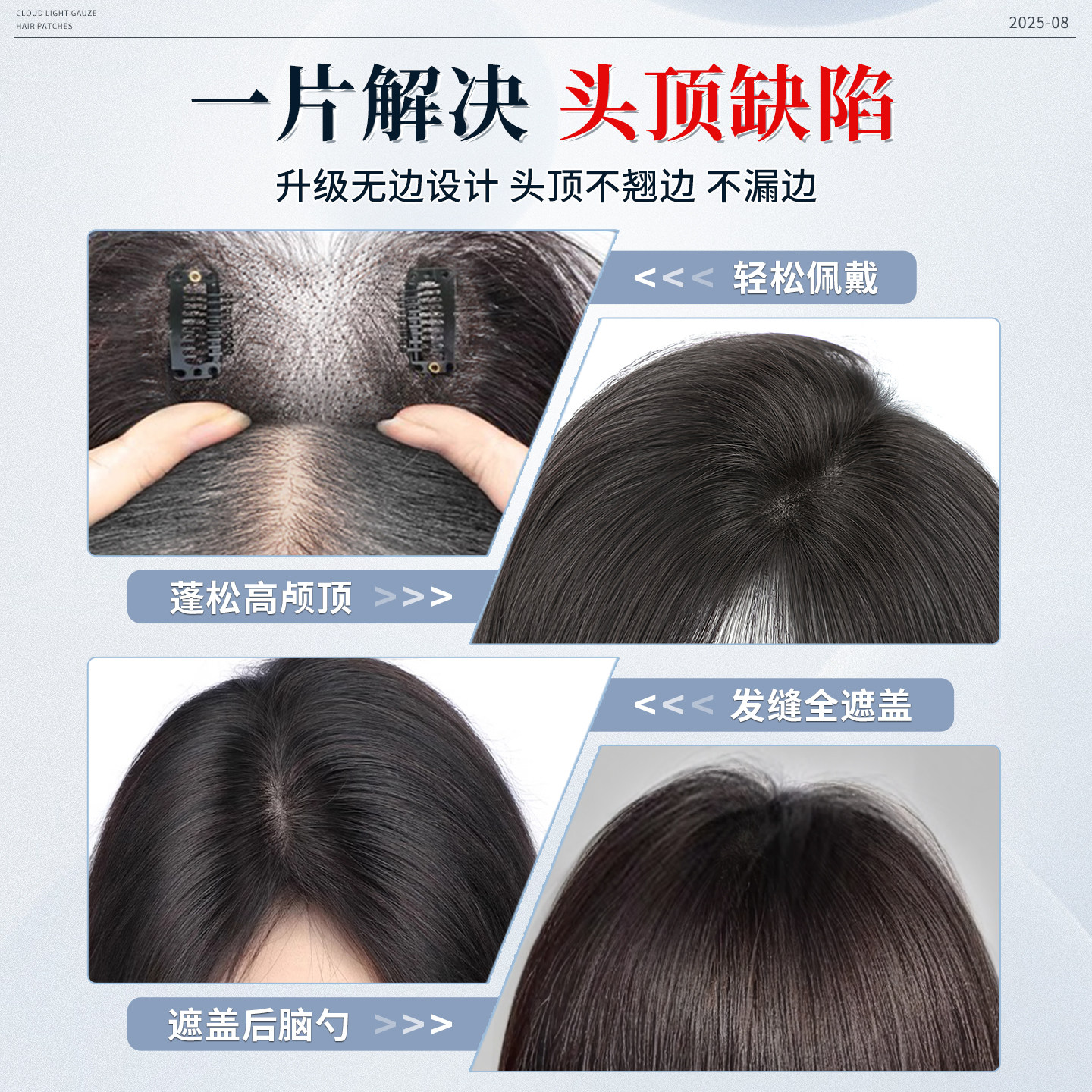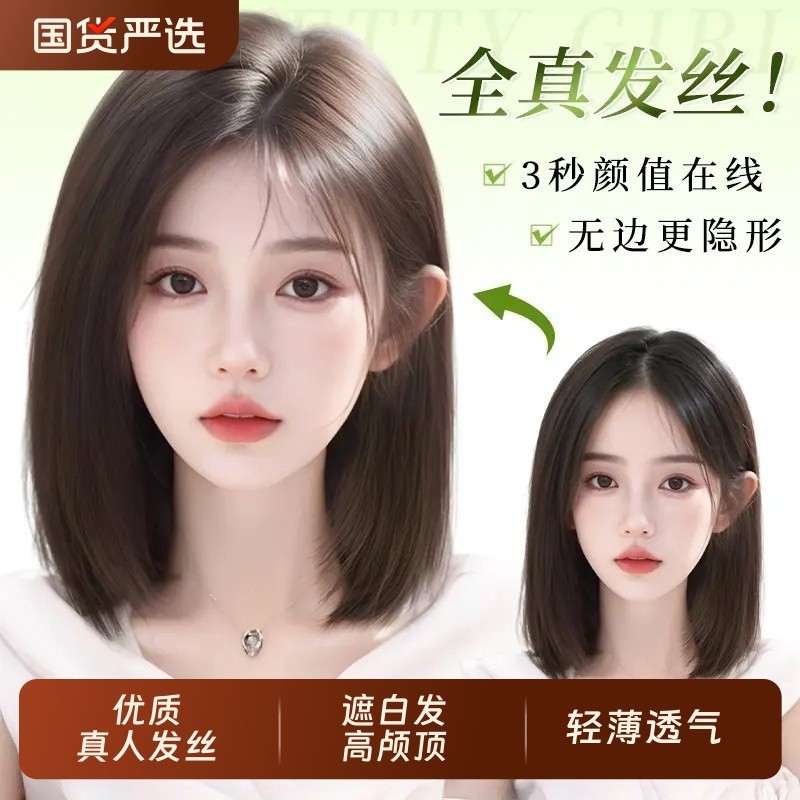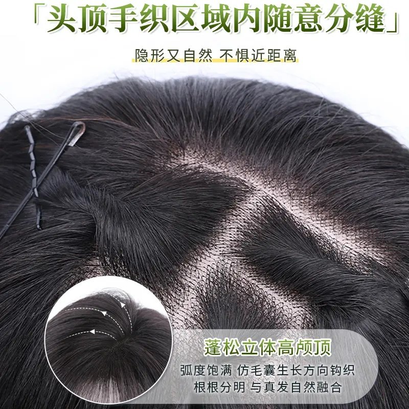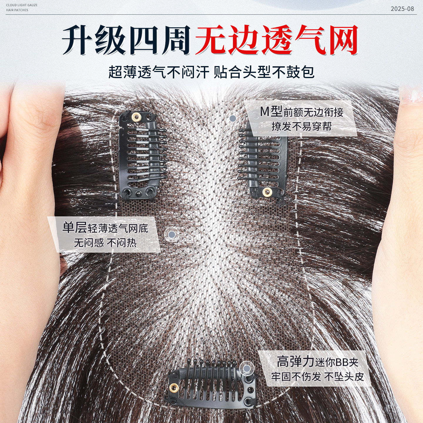 高颅顶假发女片头顶补发蓬松增发量真发遮白发轻薄法式刘海假发片