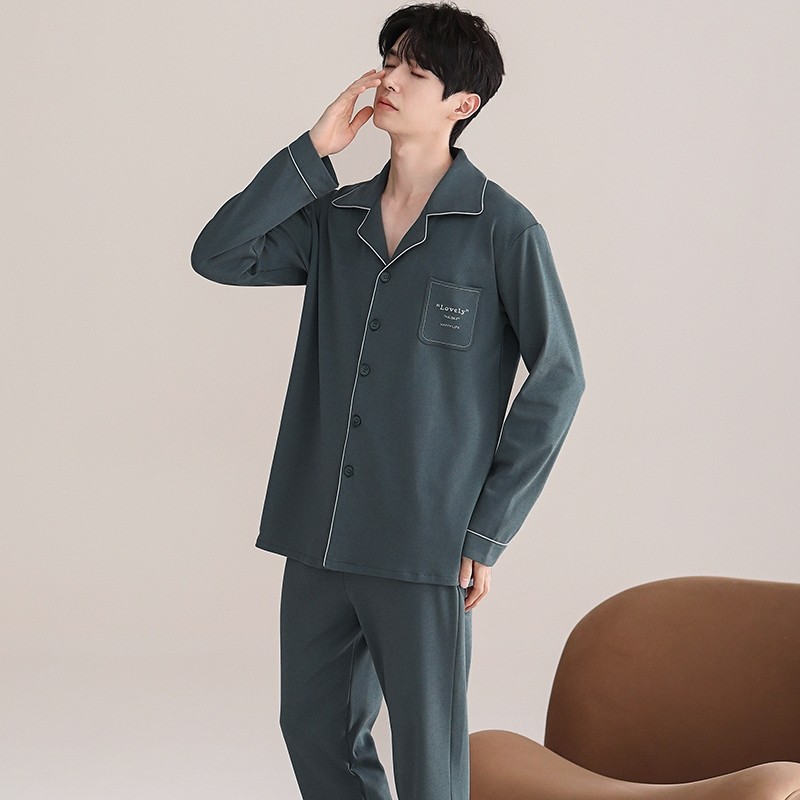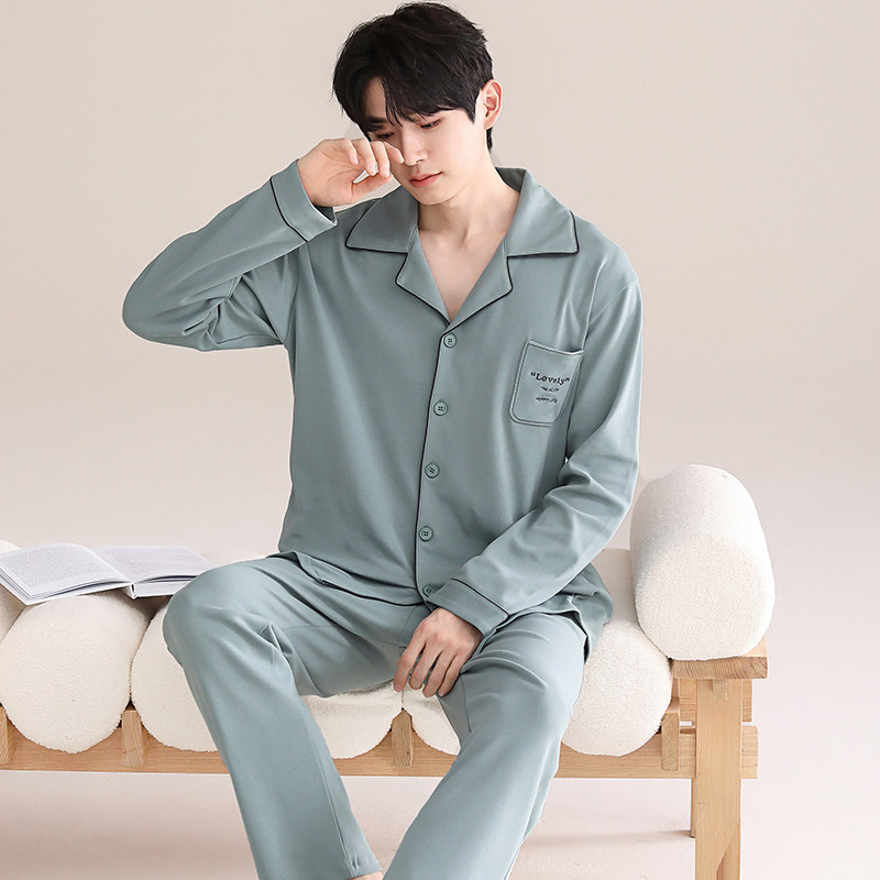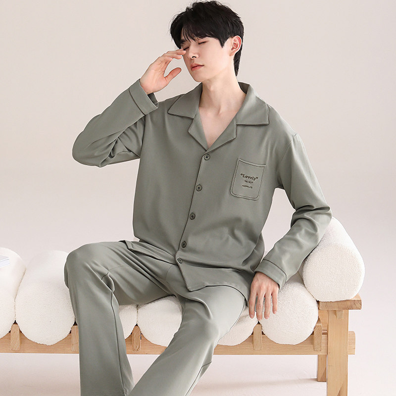 睡衣男士春秋款纯棉长袖家居服2025新款男款薄款青少年休闲套装夏