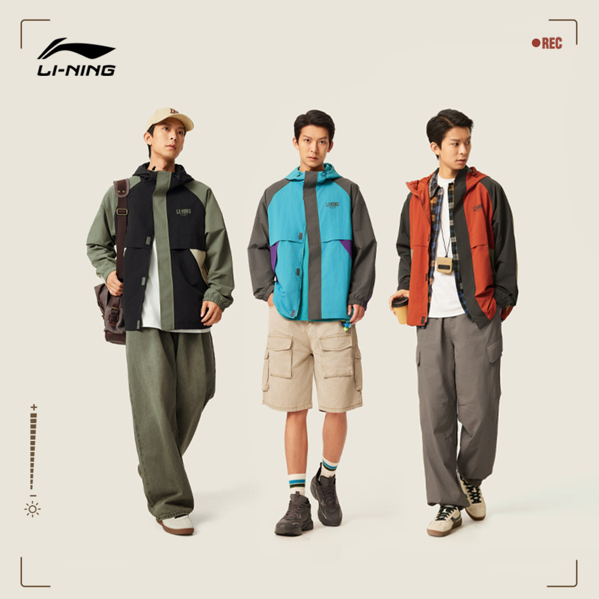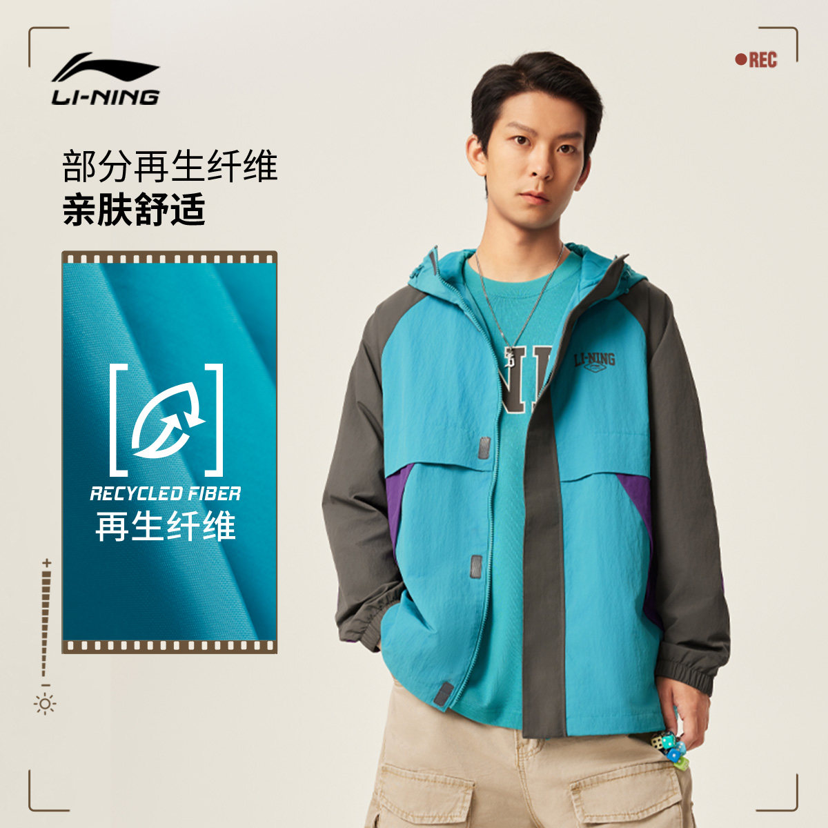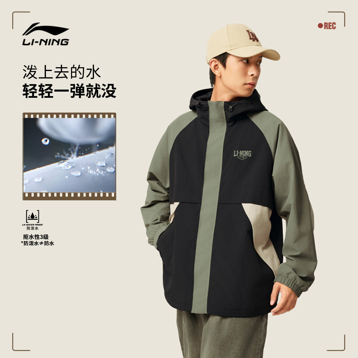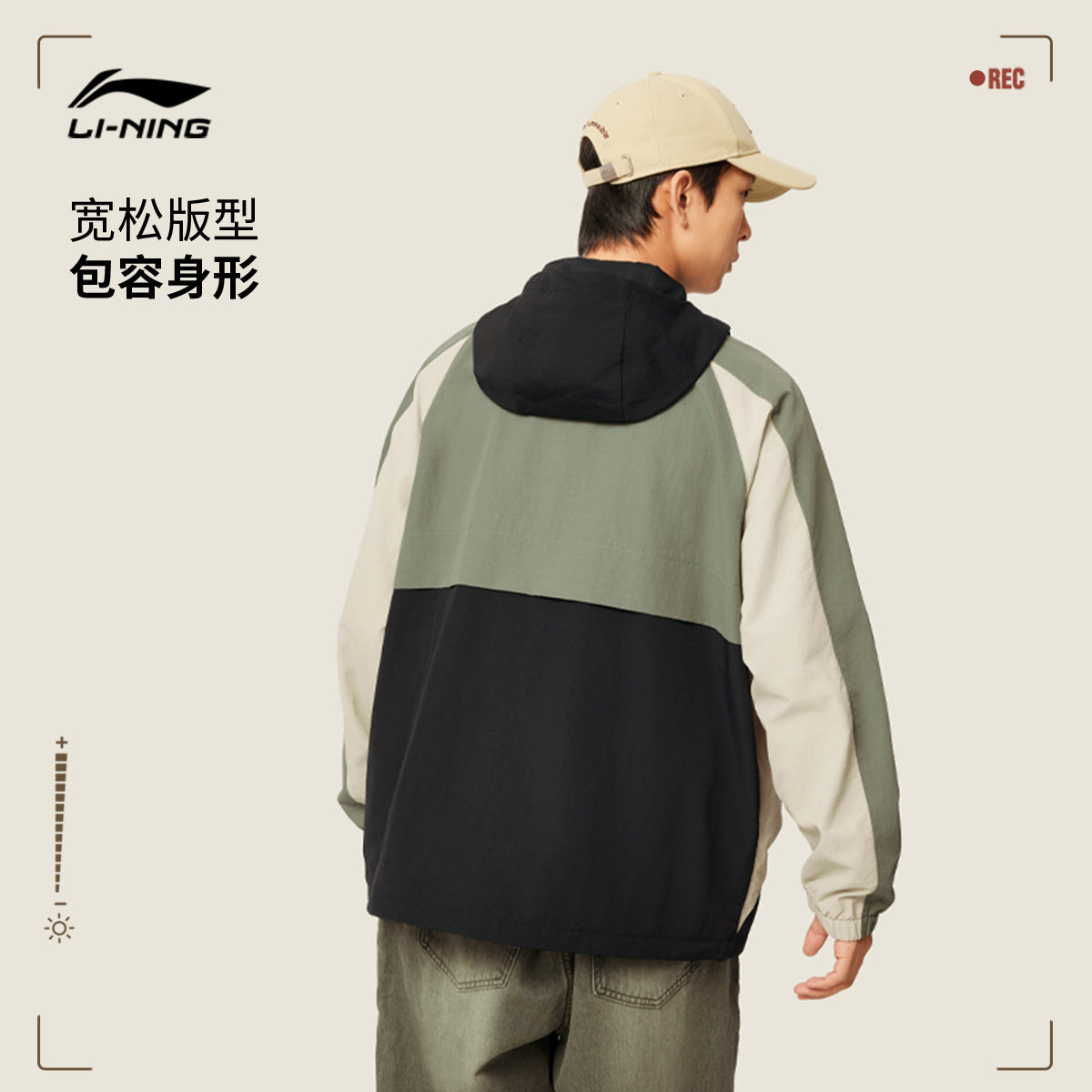 李宁外套男秋季新款拼接防泼水连帽防风服户外宽松夹克风衣运动服
