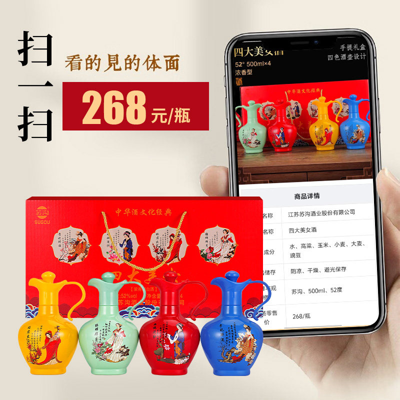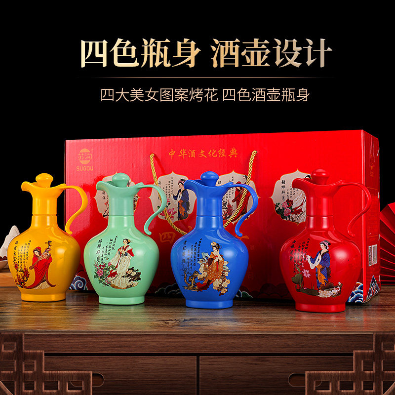 SUGOU苏沟四大美女白酒浓香酒壶礼盒送礼老丈人整箱500ml节日收藏