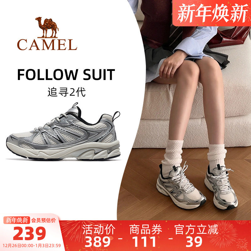 骆驼追寻2代运动鞋女士减震复古慢跑鞋网面透气增高休闲鞋子女鞋