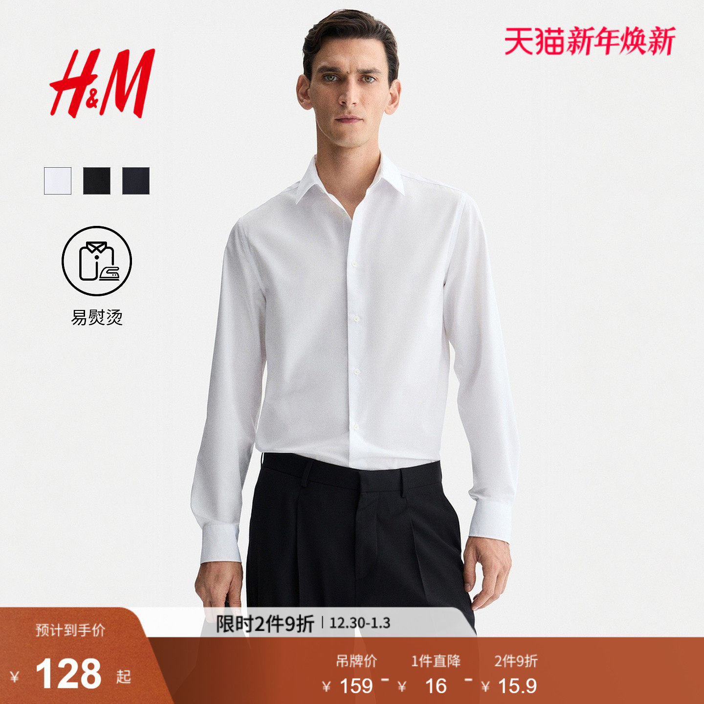 HM男装衬衫冬季商务通勤休闲合身衬衣易熨烫翻领长袖上衣1242812