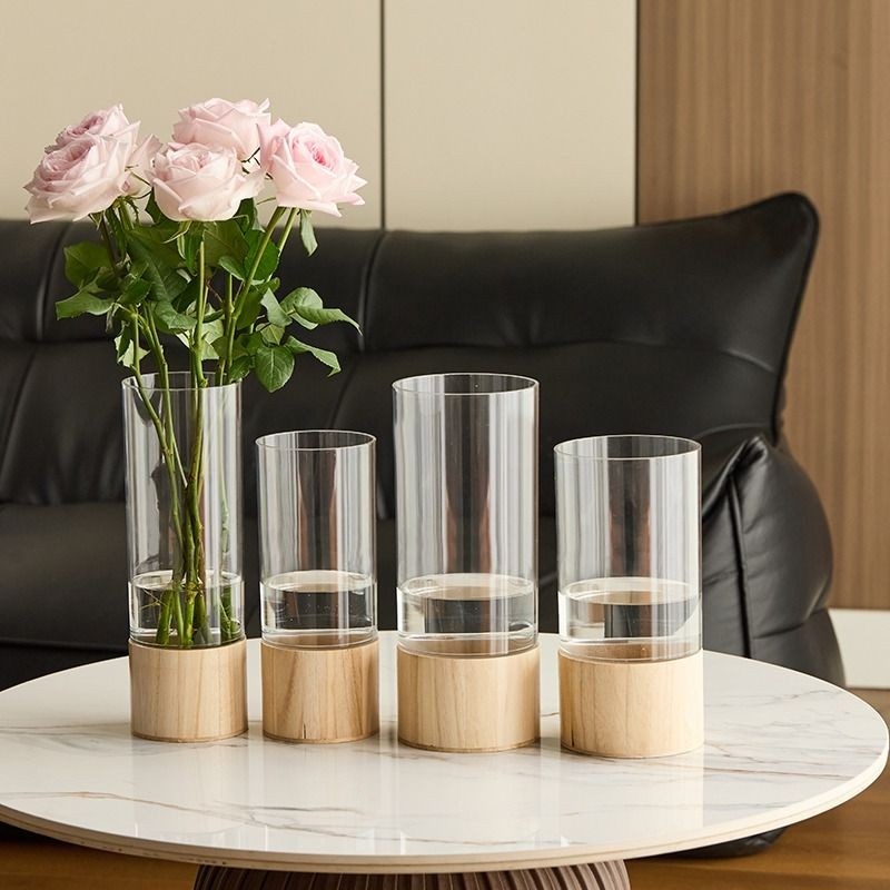 轻奢玻璃花瓶直筒透明水养鲜花百合富贵竹ins高颜值客厅装饰摆件