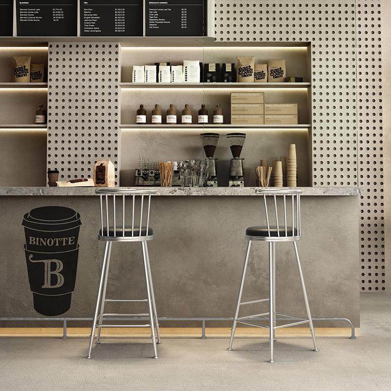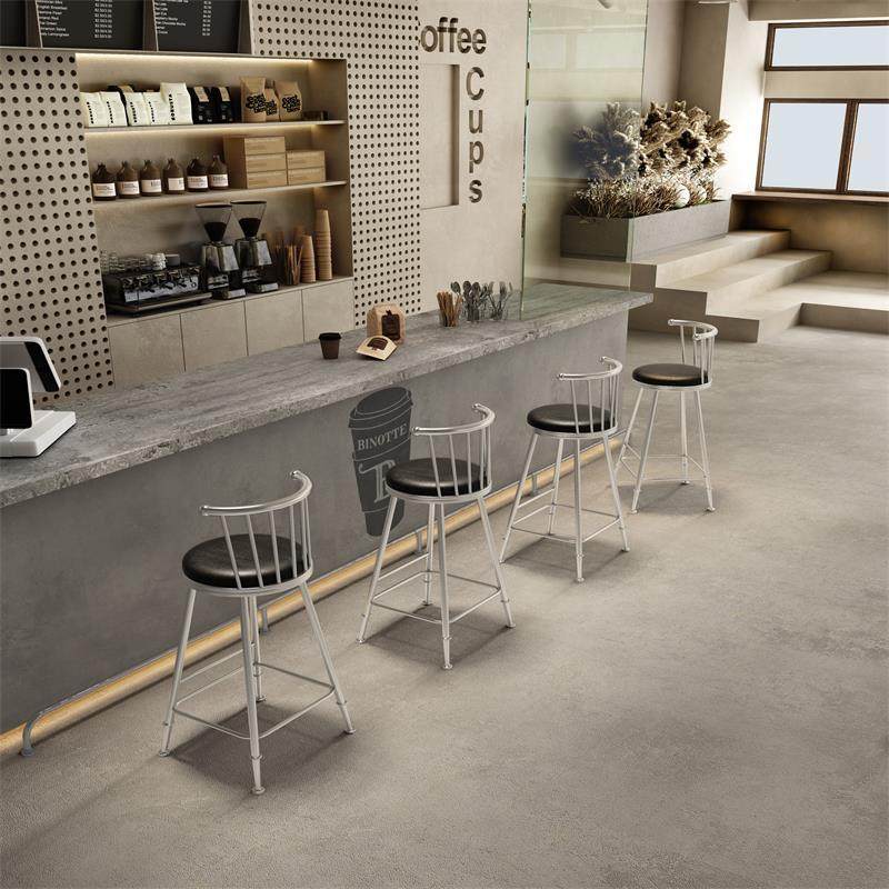 2025咖啡厅高脚凳工业风金属靠背吧椅极简吧台凳软包商用酒吧岛台椅子