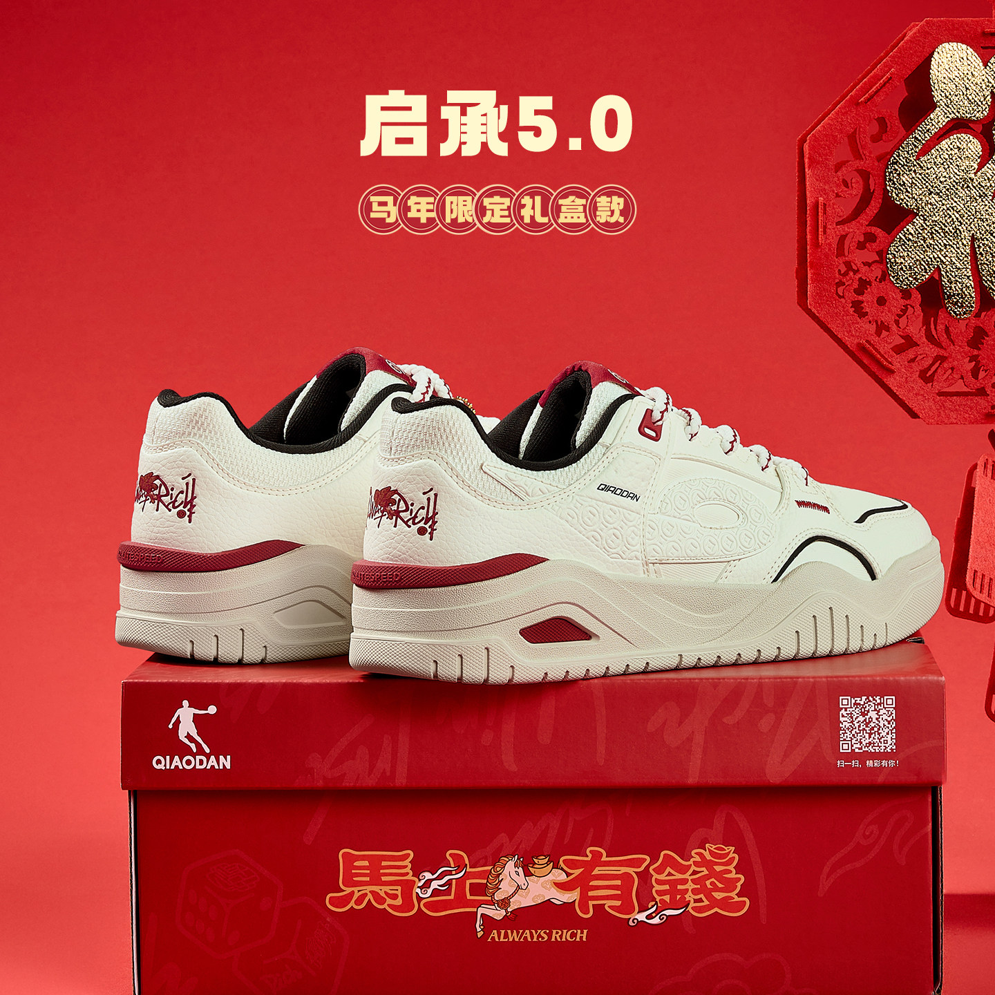 乔丹女款红色本命年运动板鞋厚底鞋增高春季新款学生男新年休闲鞋