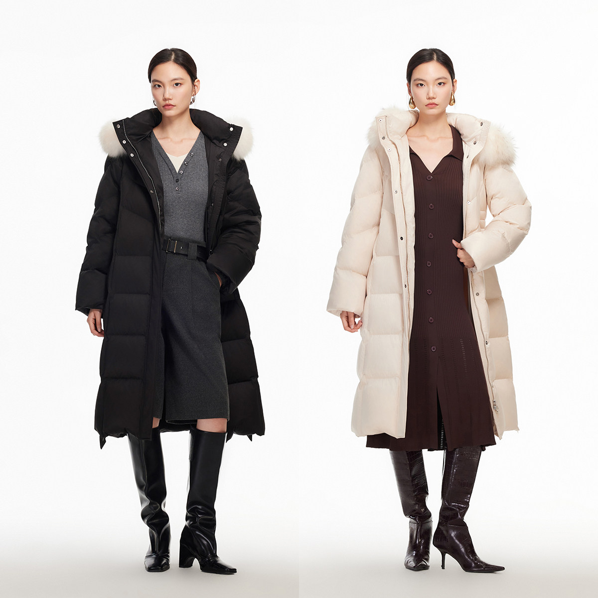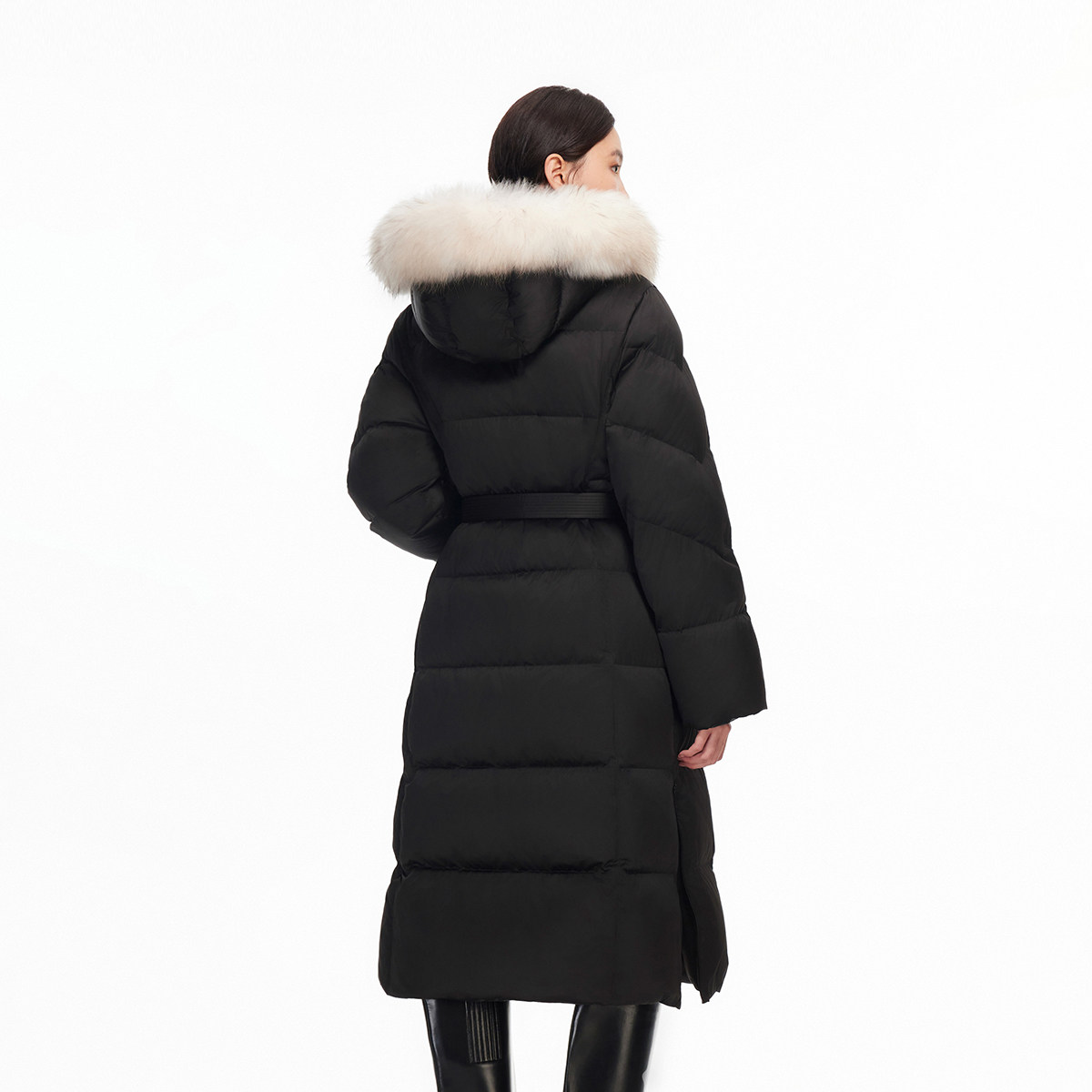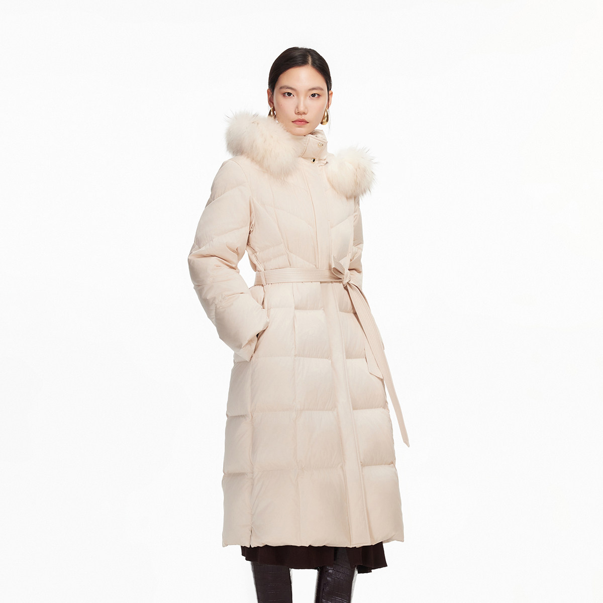 腰带长款羽绒服,修饰腰身,拉长身材比例