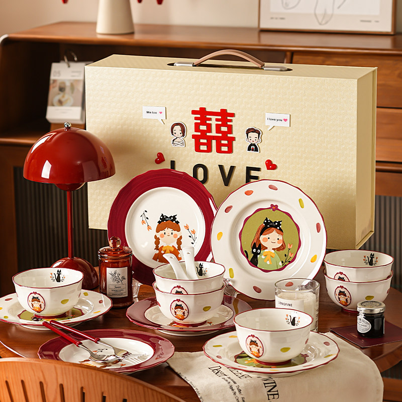 结婚送新人订婚礼物陶瓷碗碟餐具套装家用礼盒2025新款乔迁之喜