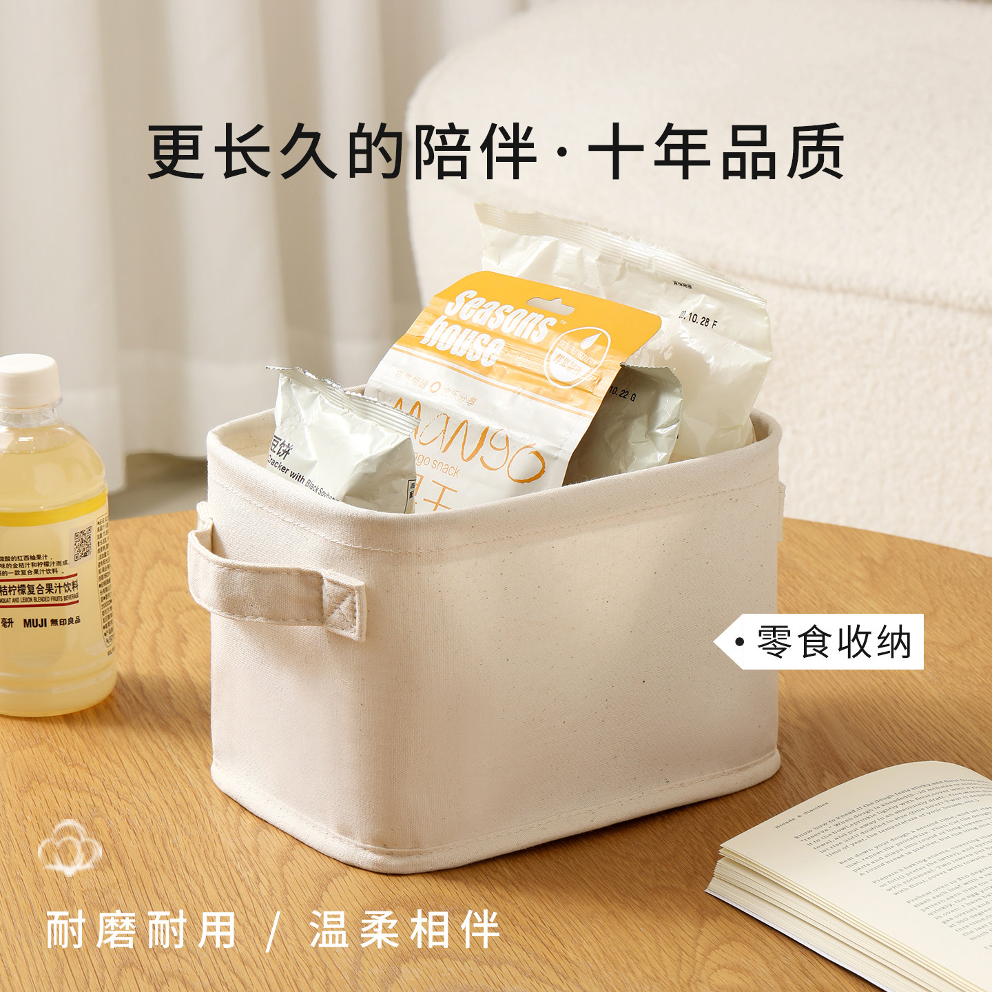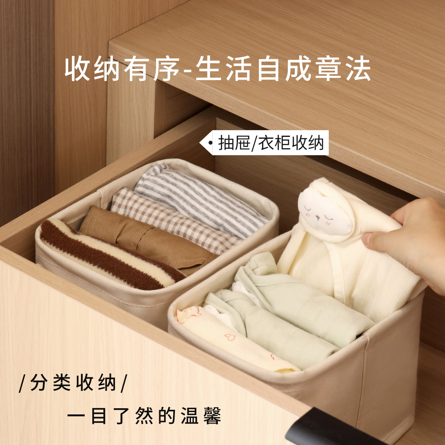 天纵纯棉杂物收纳筐家用零食玩具收纳盒抽屉置物架收纳篮储物盒小