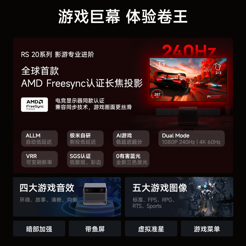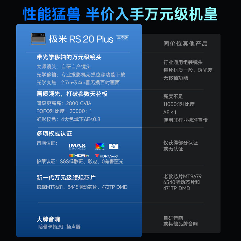 【全国补贴 立减15%】极米RS 20 Plus高亮版三色激光变焦移轴4K家用投影仪超高清高亮度投影机